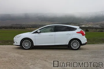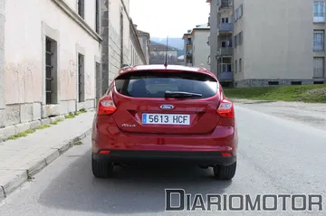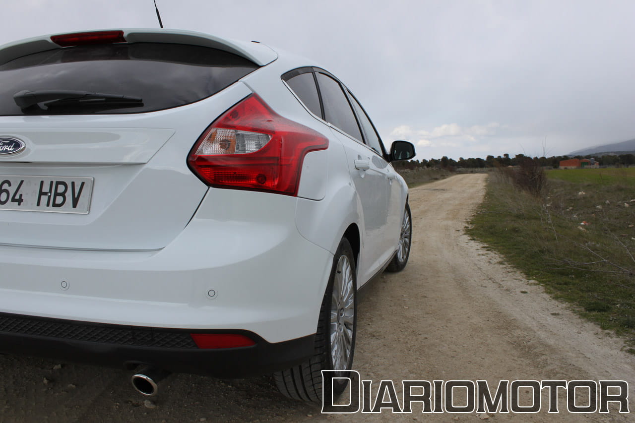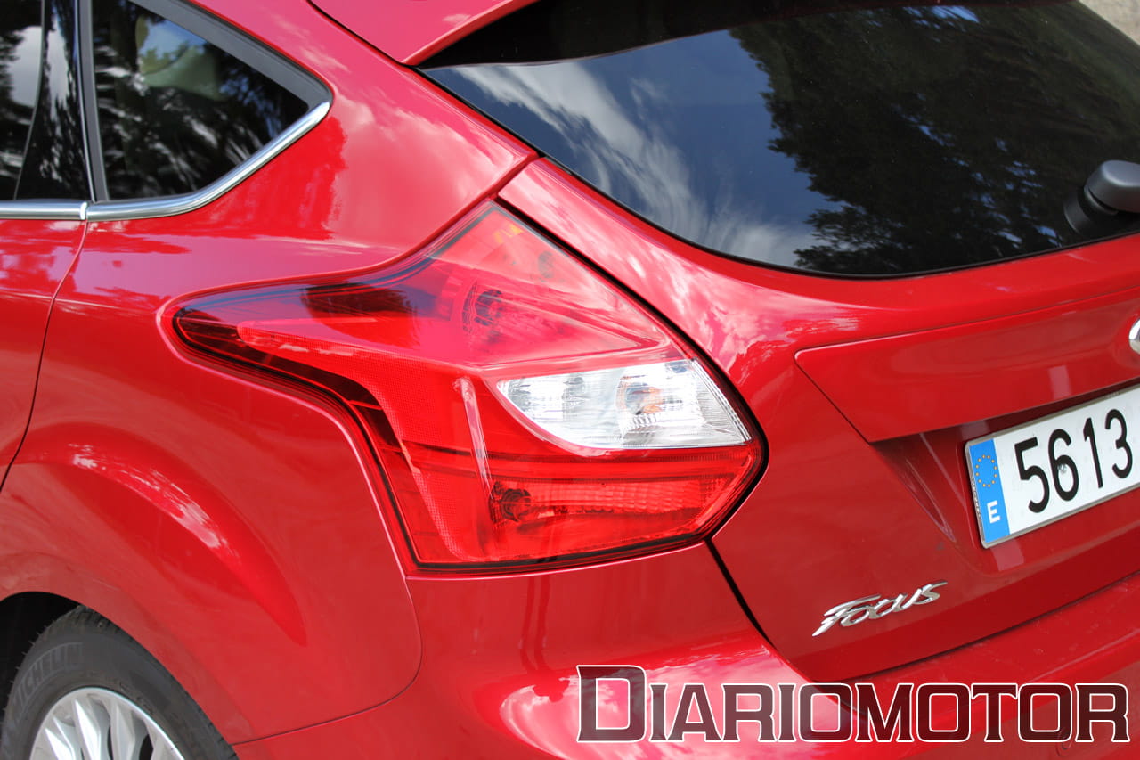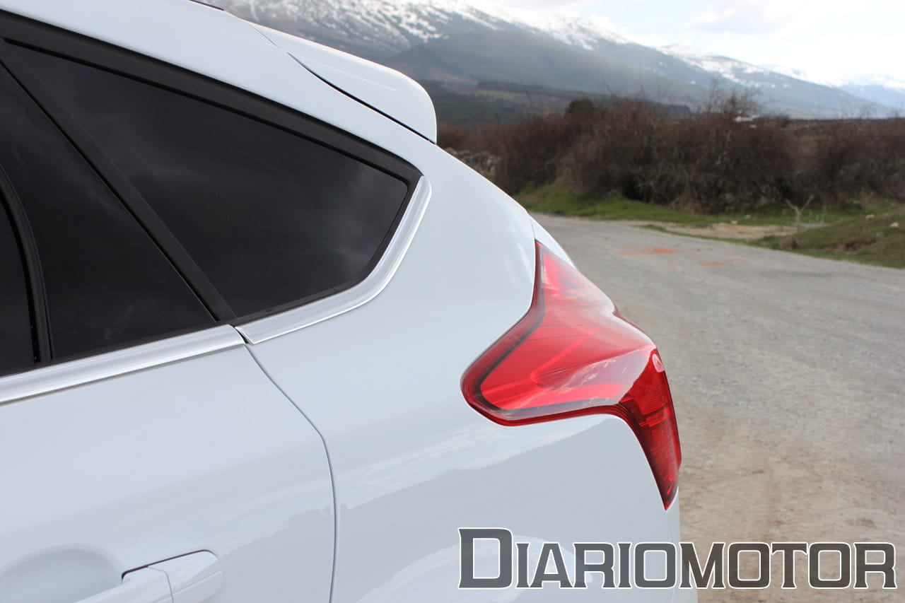 Uno se acostumbra fácilmente a la curiosa forma del paragolpes delantero o las grandes ópticas con tira LED diurna integrada. Su cintura ascendente está bastante marcada, aunque deja una buena superficie acristalada. Especialmente interesante es el conjunto trasero, con un pilar C de forma muy angulosa, enmarcado entre el spoiler y el estirado piloto trasero, de extraño pero llamativo aspecto. Un pequeño tubo de escape pone la guinda final al repaso visual del nuevo Focus.