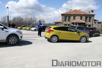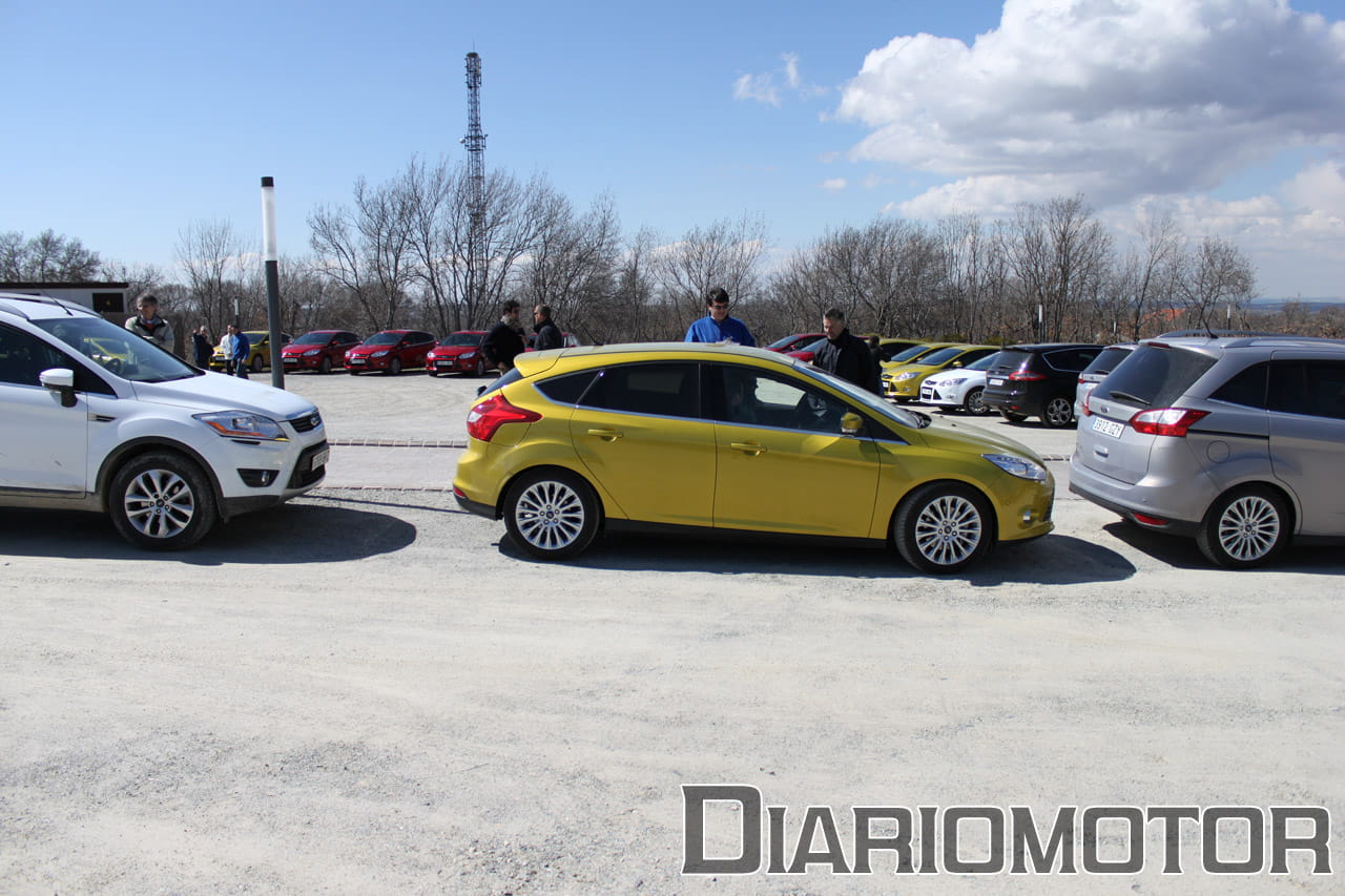 Una hilera de Ford Focus 2011 en diferentes colores y motorizaciones nos esperaba bajo el sol en La Moraleja, desde donde emprendimos ruta hasta la provincia de Segovia. Relucientes, son vehículos que llaman la atención de manera bastante notable. La filosofía Kinetic Design ha evolucionado de manera notable y lo ha hecho de manera global. En un primer momento, y tras ver las primeras imágenes del Focus hace meses, no me convencía el diseño, pero todo cambia al ver el coche en persona.