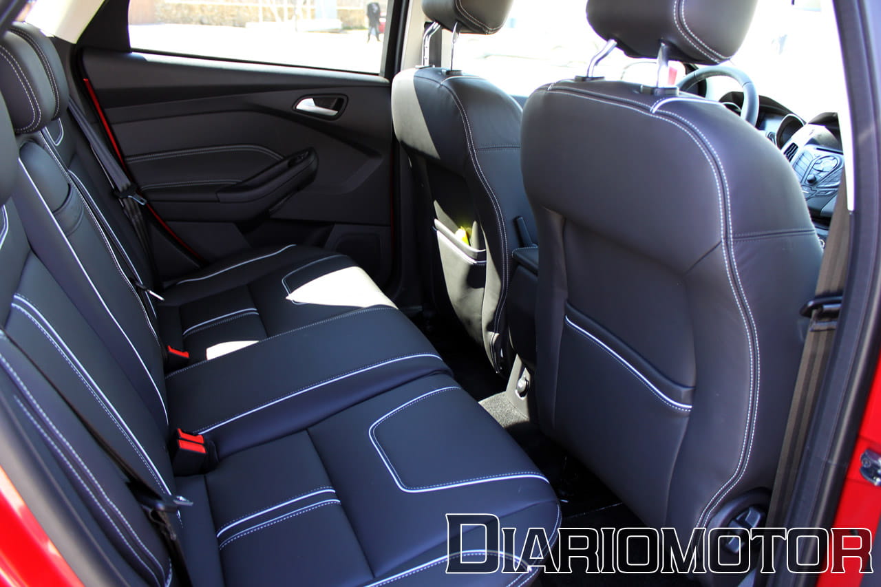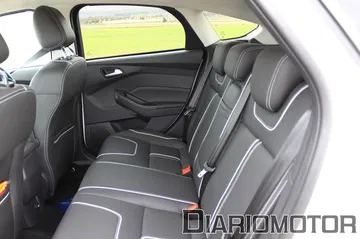 Donde el Ford Focus ha ganado muchos enteros es en el espacio para los pasajeros de las plazas traseras, muy justo en su predecesor. Con el asiento delantero regulado para mi altura (1.82 metros) aún me sobra espacio para las rodillas sentado en el asiento trasero, y mi cabeza está lejos del techo. El problema sigue siendo el pasajero central, que va a ir apretado si viajan cinco personas y el suelo a sus pies no es plano debido a la presencia de un túnel central.