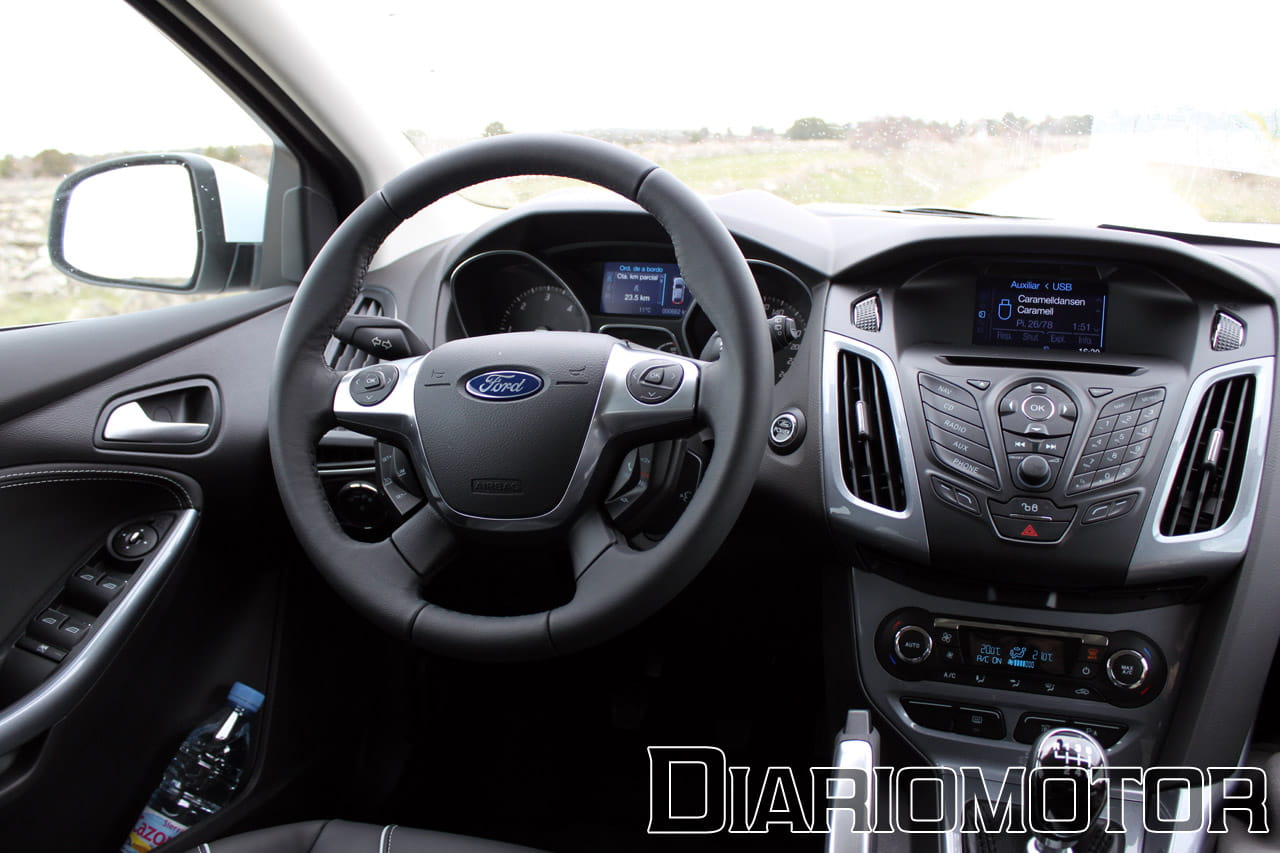 Desde el puesto de conducción nos damos cuenta del enorme salto en calidad y acabados que ha dado el Focus. El salpicadero está recubierto de un material blando de tacto muy agradable y la consola central cuenta con un acabado en plástico satinado agradable a la vista. El salto en calidad es tal, que se acerca peligrosamente a la referencia en compactos generalista, el Volkswagen Golf. No he podido encontrar malos ajustes o rebarbas de plástico ásperas, aunque algunas zonas puedan mejorar.