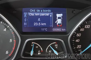 Ya no tiene que ver con la cámara delantera, pero el Focus lleva radares delanteros que permiten un funcionamiento del control de crucero adaptativo y radares traseros para el avisador de vehículo en punto muerto (BLIS). Este sistema enciende un piloto naranja en el retrovisor y pitará si accionamos el intermitente hacia ese lado, pues entiende que vamos a realizar una maniobra peligrosa. Próximamamente, el Focus también podrá equipar una cámara de visión trasera.