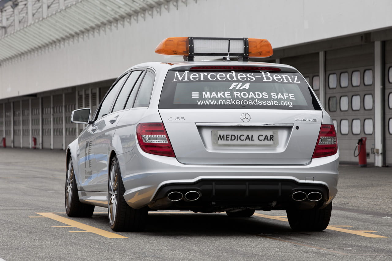 Como ya sabéis, desde hace más de 15 años Mercedes es uno de los partners oficiales de la Fórmula 1, concretamente si hablamos de los vehículos de apoyo a las carreras. Los modelos más emblemáticos y deportivos suelen ser los Safety Car – actualmente el impresionante SLS AMG – pero tampoco nos podemos olvidar de los coches médicos, que suelen ser versiones AMG de los familiares Mercedes. La noticia es que el nuevo C 63 AMG Estate ya ha entrado en servicio.