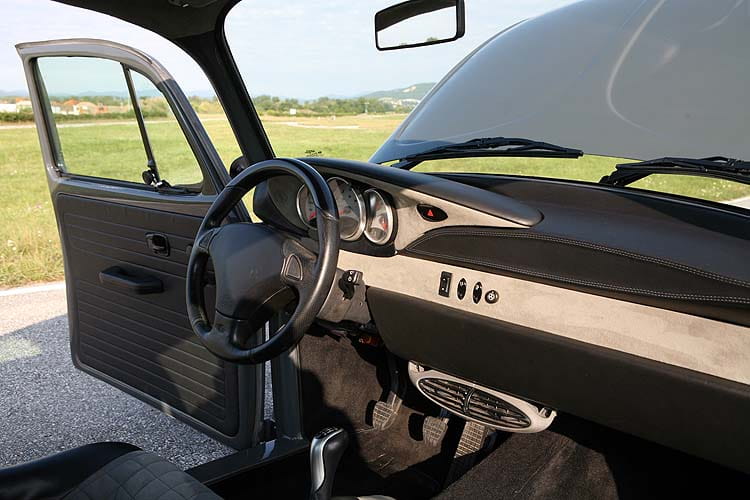 Para ello tomó como base un Porsche Boxter del 2000, contando con su plataforma, toda la base mecánica (incluyendo su motor en posición central trasera con 270 CV) y hasta su interior, y carrozarlo exteriormente a partir de un Escarabajo de 1973.