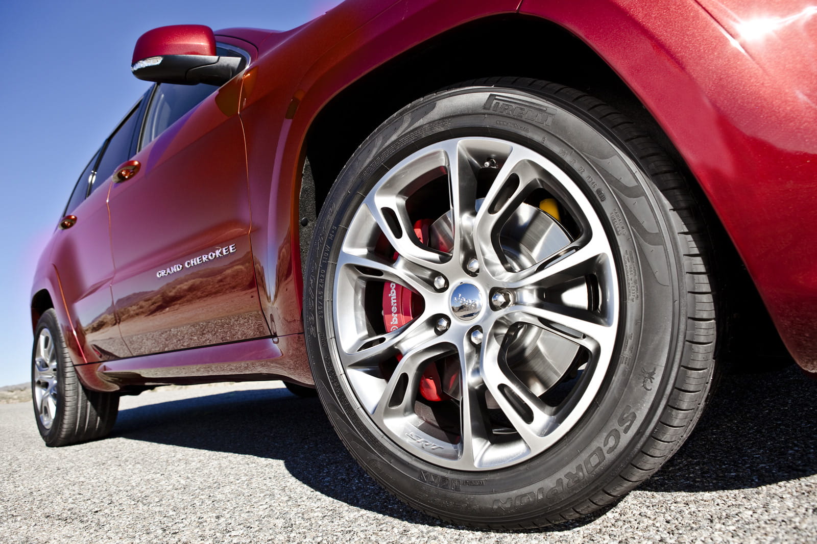 La trasera es probablemente la parte menos diferenciadora del modelo, aunque esas dos salidas de escape de 4 pulgadas de diámetro (si, poco más de 10 cm, buenos perolos) nos dan alguna que otra pista de las capacidades del Jeep Grand Cherokee SRT8. Estas salidas están encastradas en un nuevo paragolpes trasero con difusor integrado. En la parte alta, un pequeño alerón sobre el portón ayuda a generar más downforce y pegar más al asfalto el eje trasero. Ejes que montan llantas de 20 pulgadas con neumáticos Pirelli PZero P295/45ZR20.