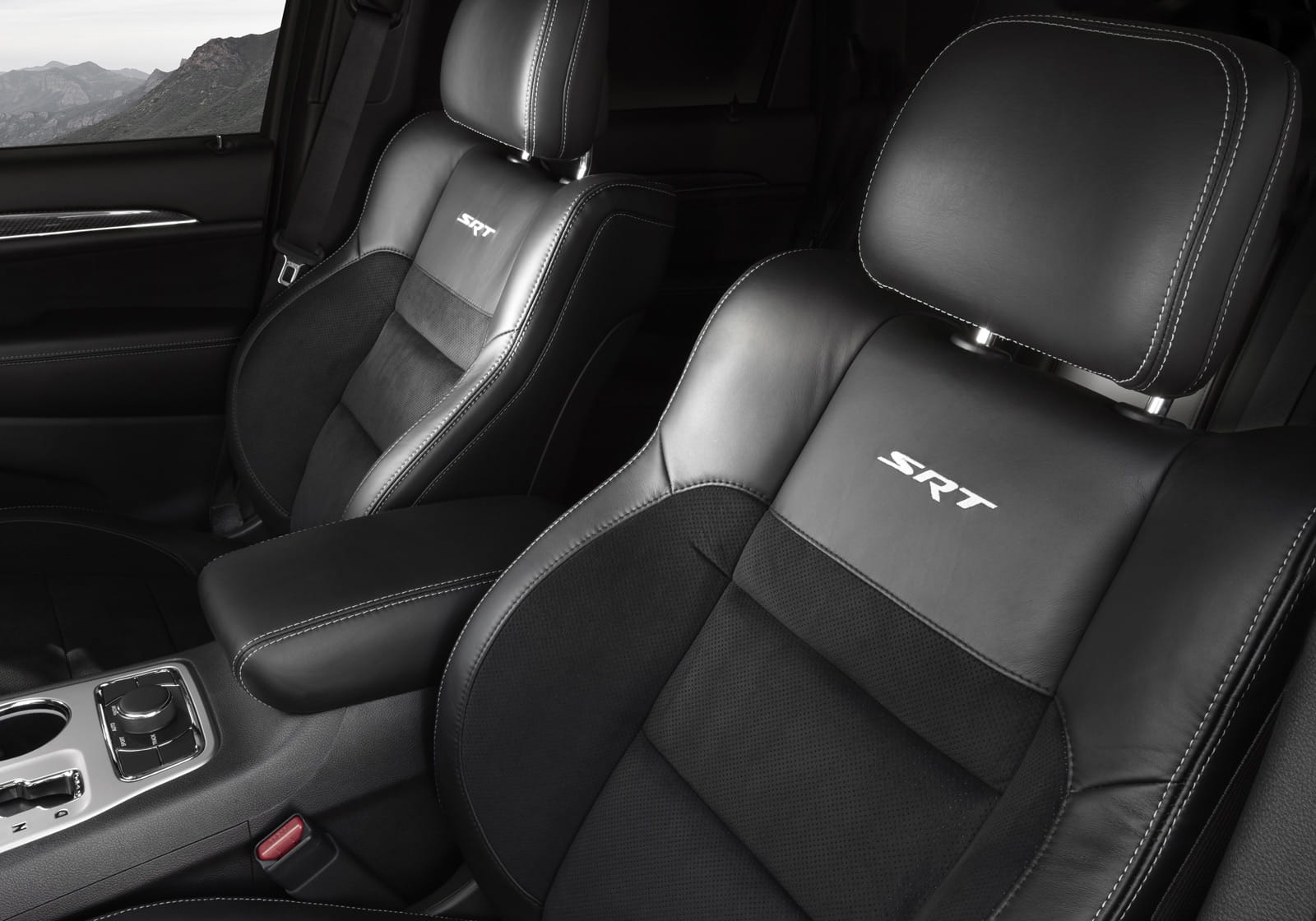 Los asientos, de corte deportivo, están tapizados en cuero Nappa y gamuza en la parte central con los logotipos SRT8 bordados en los respaldos. Según nos cuentan, son igualmente válidos para un viaje largo con la familia que para un día en circuito. Habría que verlo, pero por las imágenes lo parecen.