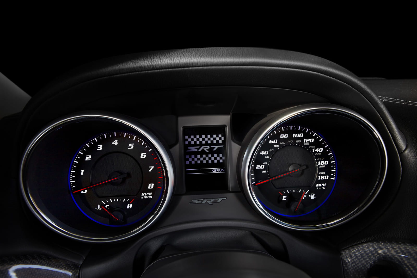 Quizá la parte más interesante de su interior sea la pantalla Performance Pages situada entre los relojes del cuadro de mandos. En esta pantalla el conductor podrá ver información sobre la configuración de la dirección, potencia que se entrega en ese momento, tiempos en el 0 a 100 km/h y en el 100 km/h a 0, fuerzas G o tiempos en aceleración en el ¼ de milla, por ejemplo. Ideal para los piques sanos con los amigos (en entornos controlados, por supuesto).