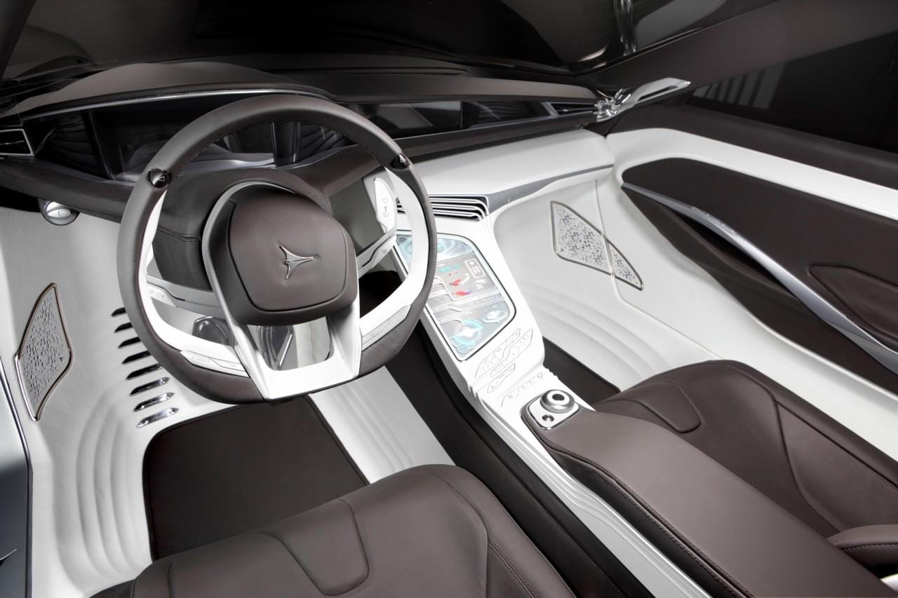 Ni que decir tiene que se trata tan sólo de un ejercicio de diseño, sin más intención que la de mostrar cómo serán los coches en un futuro muy lejano según sus diseñadores. Ahora que está de moda fusionar carrocerías, han decidido crear una especie de berlina monovolumenizada pero sin dejar de lado la deportividad. Buscando similitudes, me ha venido a la cabeza que se parece a un cruce entre el Citroën DS5 y el Aston Martin Lagonda de los años 70.