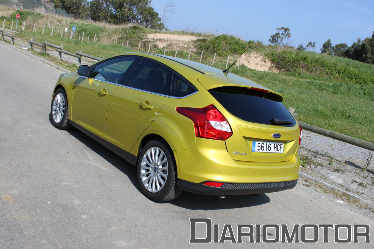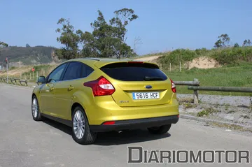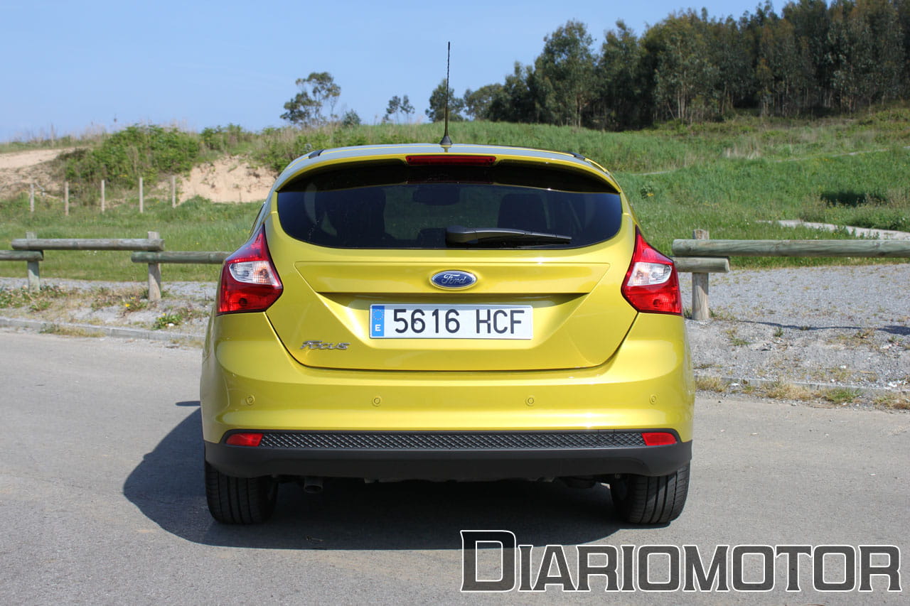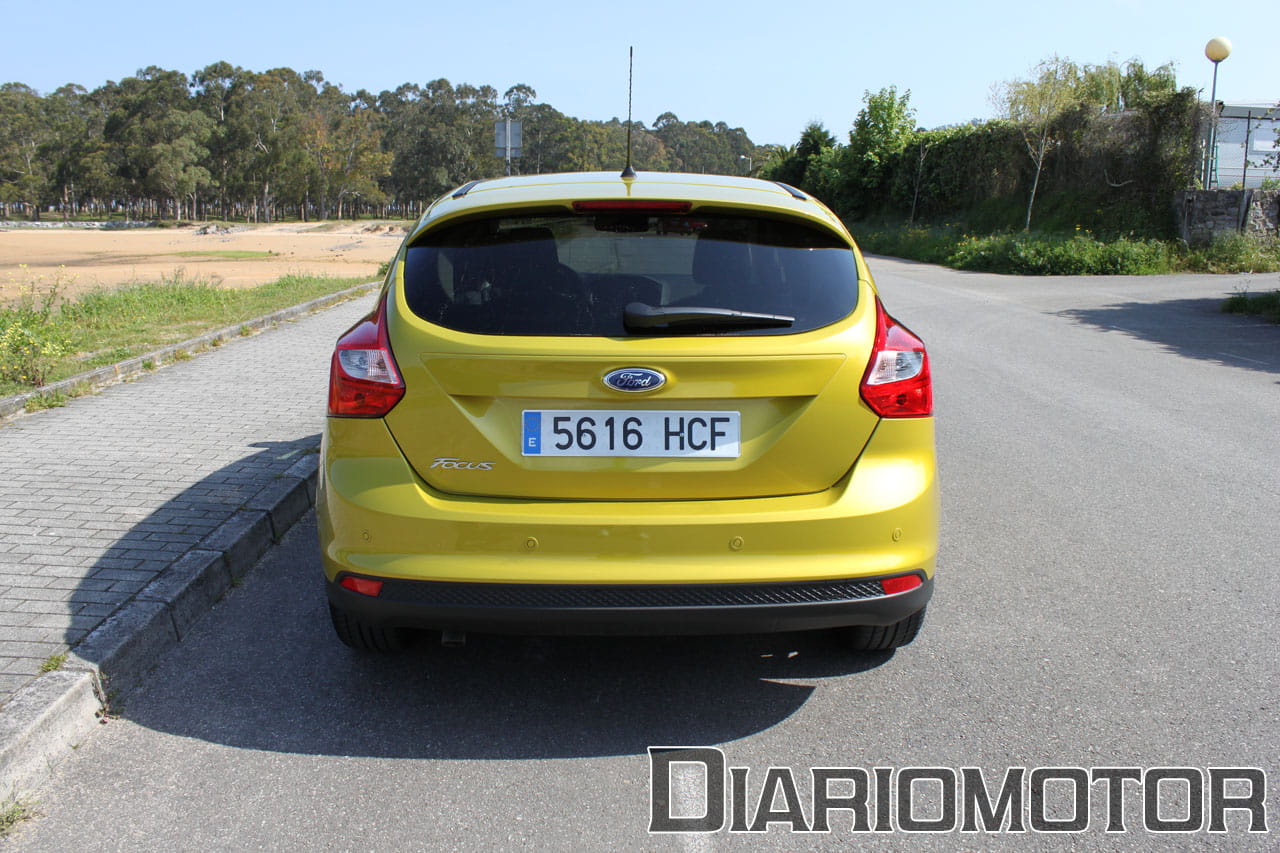 De tratarse de un Focus equipado con el motor 2.0 TDCi o los potentes motores 1.6 EcoBoost la cola del escape sería cromada y estaría bien visible bajo el paragolpes trasero, pero los 1.6 TDCi tienen un escape oculto apuntando hacia el suelo. Las llantas de 17 pulgadas ponen el punto final, con un diseño multirradio elegante, pero en absoluto deportivo. También hay que decirlo, el Focus tiene una imagen más elegante y seria, pero la versión ST solucionará esto en apenas unos meses.