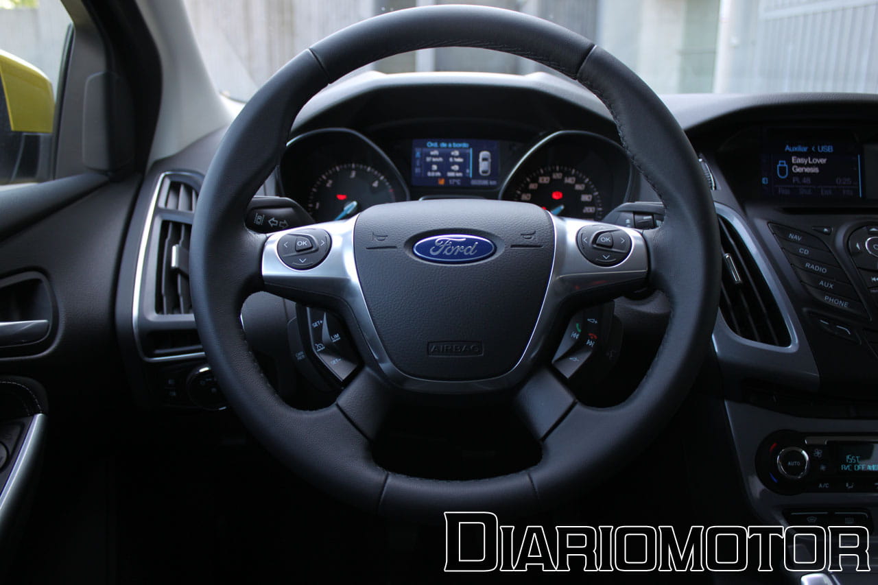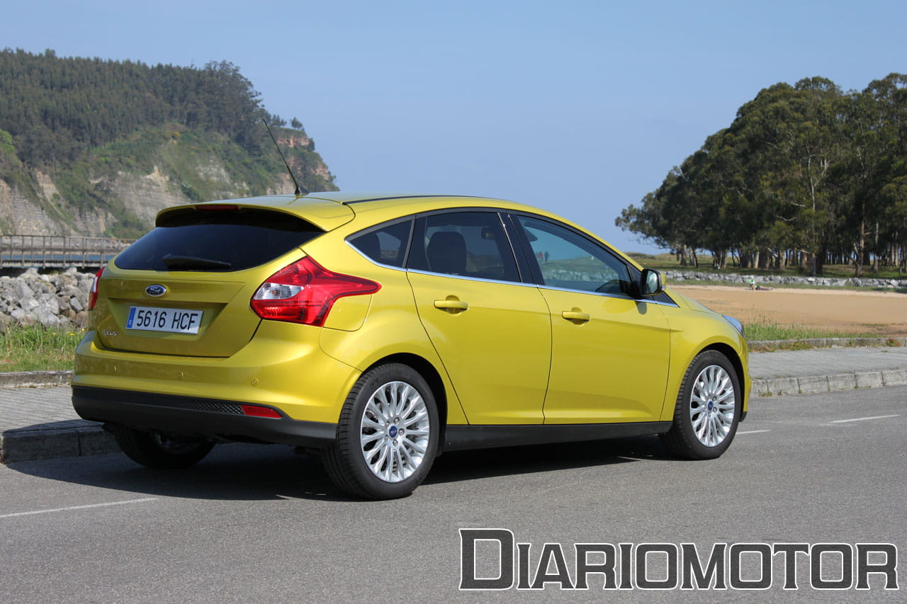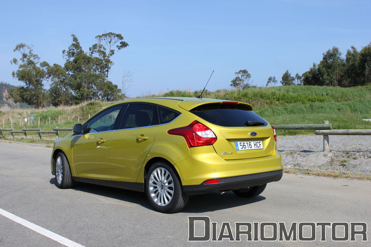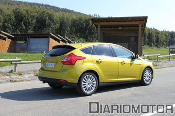 De tratarse de un Focus equipado con el motor 2.0 TDCi o los potentes motores 1.6 EcoBoost la cola del escape sería cromada y estaría bien visible bajo el paragolpes trasero, pero los 1.6 TDCi tienen un escape oculto apuntando hacia el suelo. Las llantas de 17 pulgadas ponen el punto final, con un diseño multirradio elegante, pero en absoluto deportivo. También hay que decirlo, el Focus tiene una imagen más elegante y seria, pero la versión ST solucionará esto en apenas unos meses.
