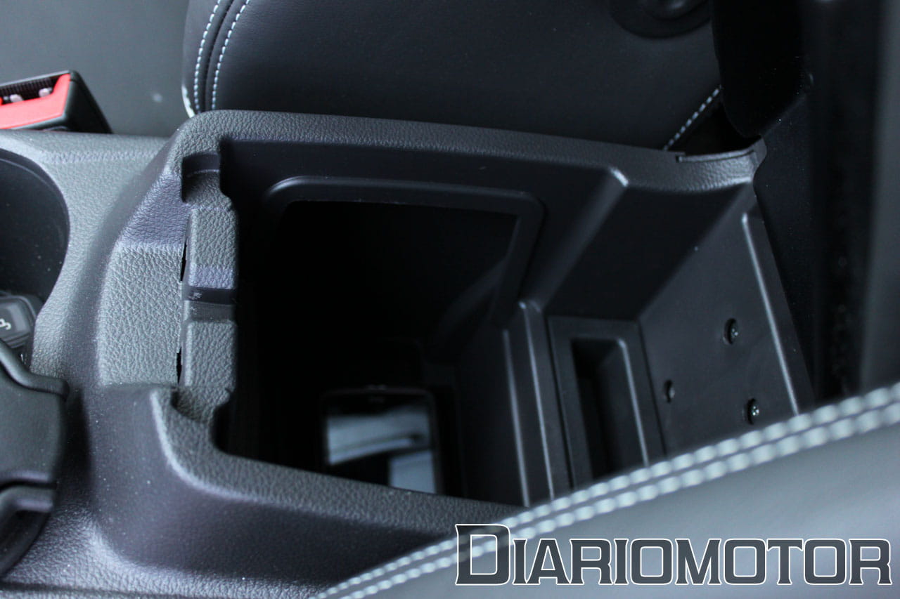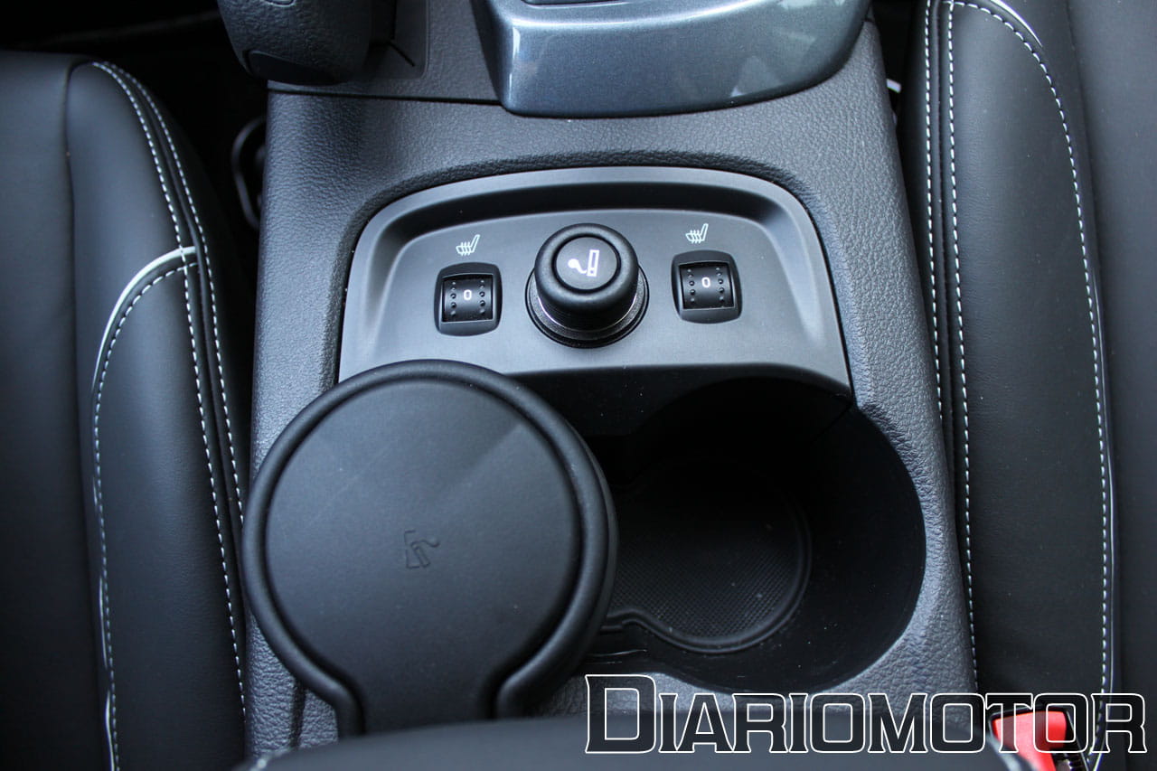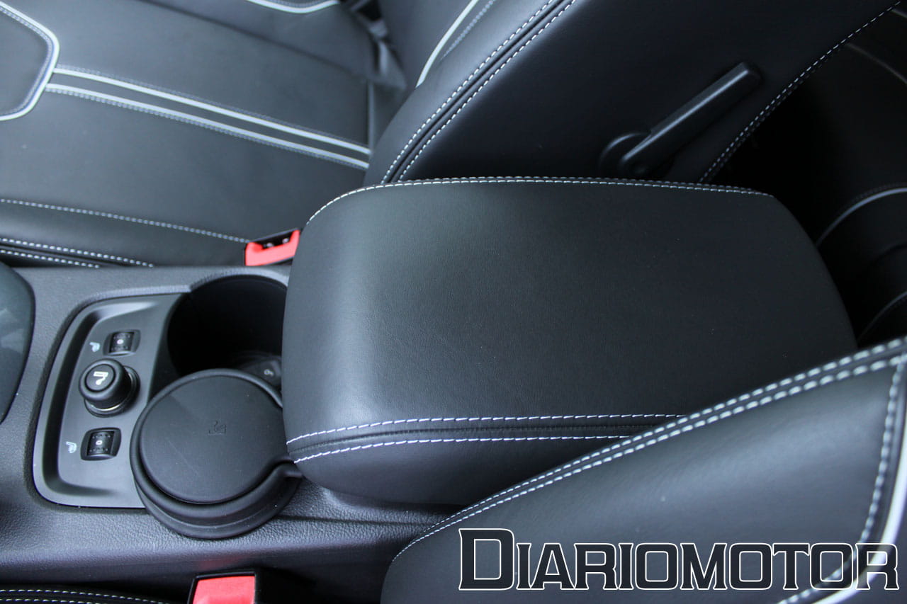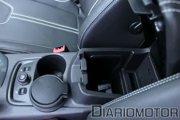 El climatizador queda un poco bajo y requiere apartar la vista de la carretera, lo mismo ocurre con los controles de tecnologías como el aparcamiento Auto Park Assist. El freno de mano queda a la izquierda de la palanca de cambios, que va más cerca del copiloto. No queda ergonómicamente a desmano, pero es un detalle poco explicable. Hay dos huecos portaobjetos en el espacio entre ambos asientos y un cajón central bajo el reposabrazos, aunque sin tapizado interior y forma un tanto irregular, a pesar de ser capaz en volumen.
