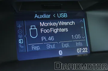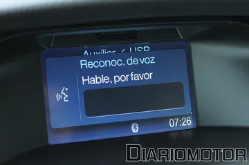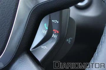De color azul cielo, tiene una fácil lectura y disfruta de reloj para la temperatura del agua, que es de agradecer en estos tiempos. Una pantalla en color de gran tamaño acumula las extensas funciones del ordenador de a bordo, que ya desarrollaremos. El volante forrado en cuero tiene dos selectores multidireccionales a cada lado, para equipo de infotainment y ordenador de a bordo, además de poder manejar desde el mismo el regulador/limitador de velocidad, el manos libres Bluetooth o el equipo de sonido.