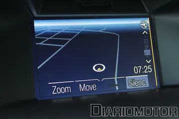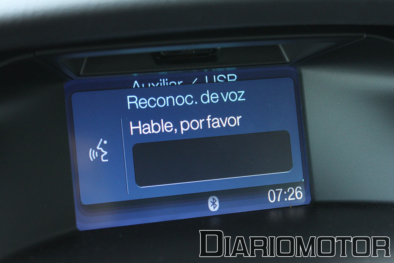 Son muchos botones pero por fortuna de uso intuitivo. La consola central tiene en su parte superior una pantalla de 5 pulgadas, por venir nuestra unidad equipada con navegador. Es pequeña, pero se ve bien en todo tipo de condiciones lumínicas. La consola central tiene muchos botones, pero no cuesta acostumbrarse a su uso, realmente no usaremos más que el selector central – que se puede manejar en el lateral derecho del volante – y los botones de cambio de modo, pues el volumen también se puede usar desde el volante (o mediante el control por voz).