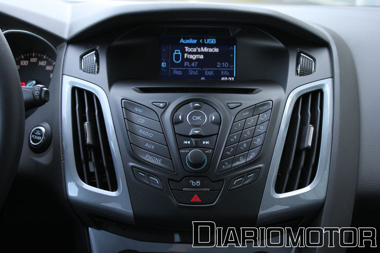 Es el plástico negro que rodea a la pantalla multifunción, que si bien ajusta con solvencia, tiene un aspecto discordante con la alta calidad que lo rodea. La parte baja de puertas y salpicadero es de un plástico duro de aspecto fuerte y bien rematado. A nivel de materiales, podemos decir que el Ford Focus está casi a la altura de la referencia en habitáculos – el Volkswagen Golf – y por realmente muy poco no lo supera, por detalles pequeños que se pueden subsanar en evoluciones posteriores.