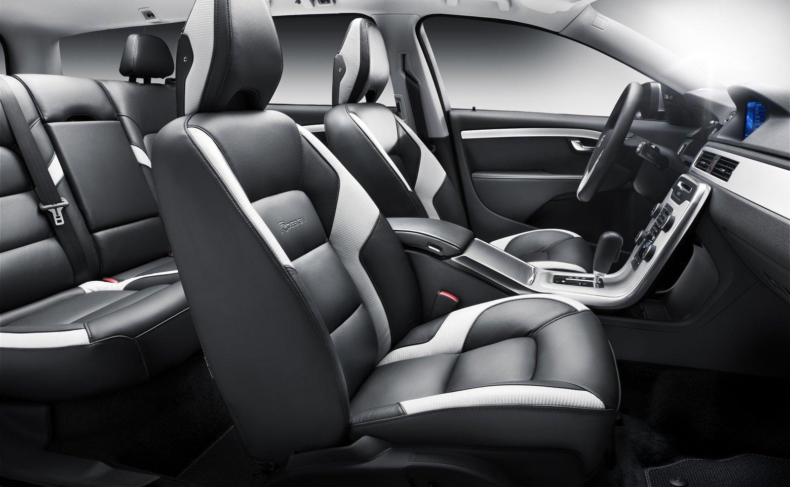 En el interior, nos encontramos asientos, zona del cambio y paneles de las puertas en cuero negro. El habitáculo apenas varía en este V70 R-Design y, sin embargo, es la clave del nuevo Volvo S80 Executive. Es una nueva terminación de equipamiento destinada a enfatizar la vertiente lujosa del S80, como demuestra la presencia de su interior. Es el único Volvo cuyo salpicadero puede tapizarse en cuero, bien en color negro o en marrón oscuro. Los asientos y los paneles de las puertas también van tapizados en este material.