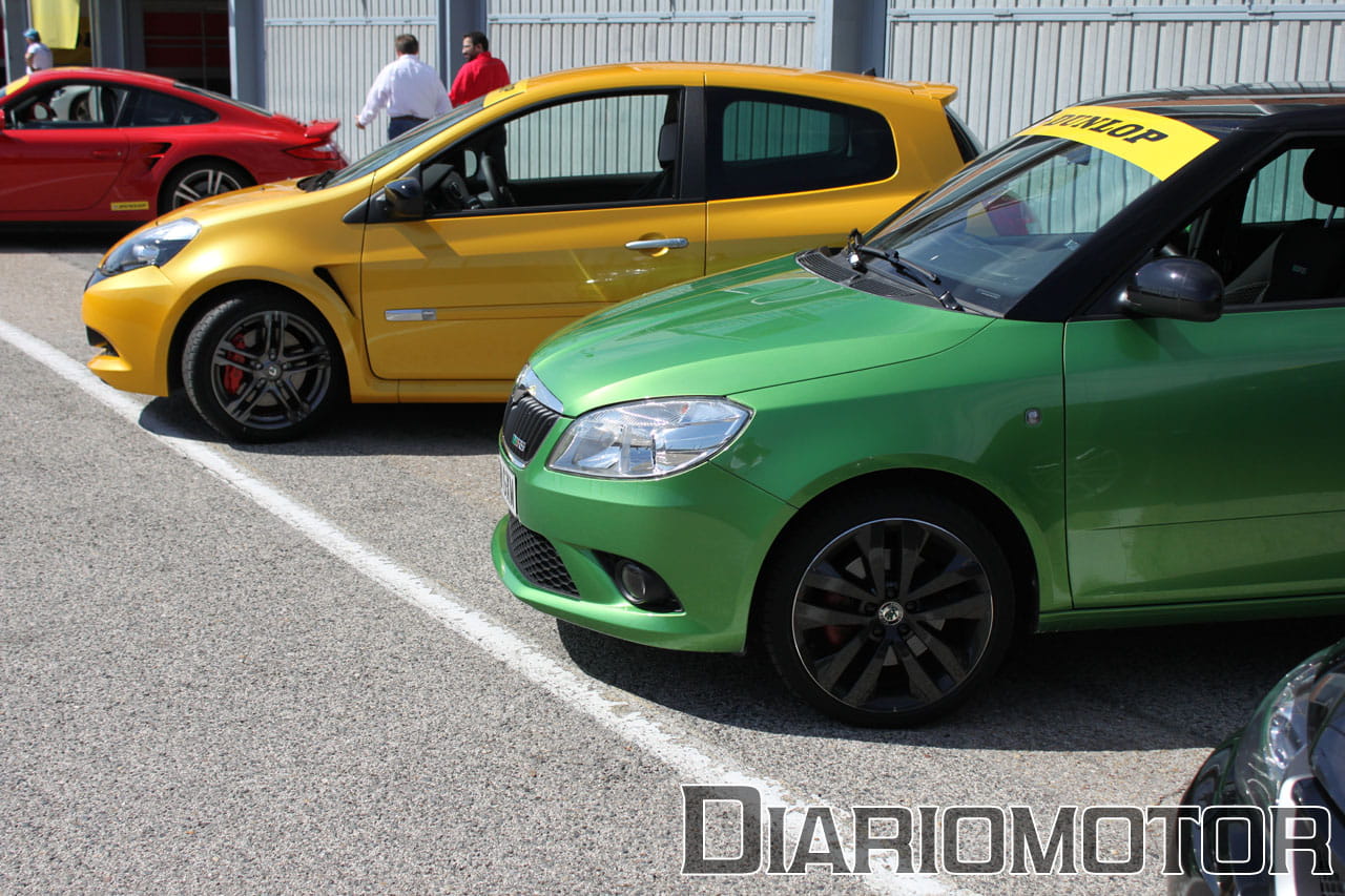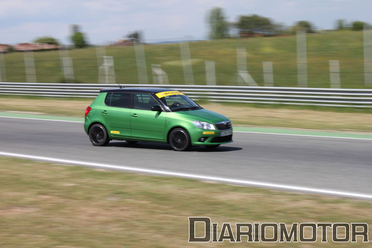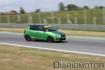 Aparte de llevar el cambio DSG, el Skoda Fabia RS lleva un motor 1.4 TSI de 180 CV, el segundo menos potente de todos los presentes. El sonido la verdad que no terminaba de gustar al escucharlo rodar por el circuito, y eso que eran las 9 de la mañana cuando se puso en marcha el coche por el Jarama sin ningún otro en pista.