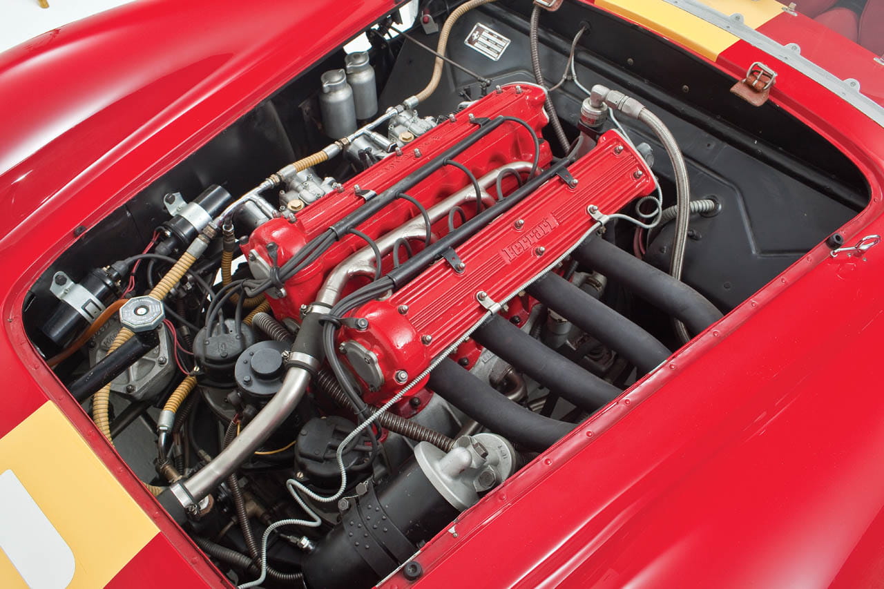 Fue el último Ferrari en montar un cuatro cilindros si mal no recuerdo, pero qué motor. Diseñado por el legendario Aurelio Lampredi para la Fórmula 2, pero tras su marcha fue adaptado a prototipos de competición como este Testa Rossa Type-C Spider. Curiosamente, es un coche de producción más escasa que los Ferrari 250 TR o los 250 GTO, que suelen alcanzar cifras astronómicas en subasta. Pero no por tener sólamente cuatro cilindros no era un auténtico Ferrari, la máquina que latía bajo el capó era toda una obra de arte.