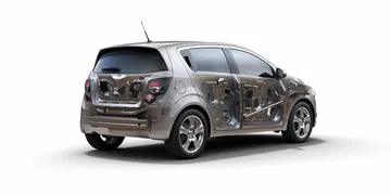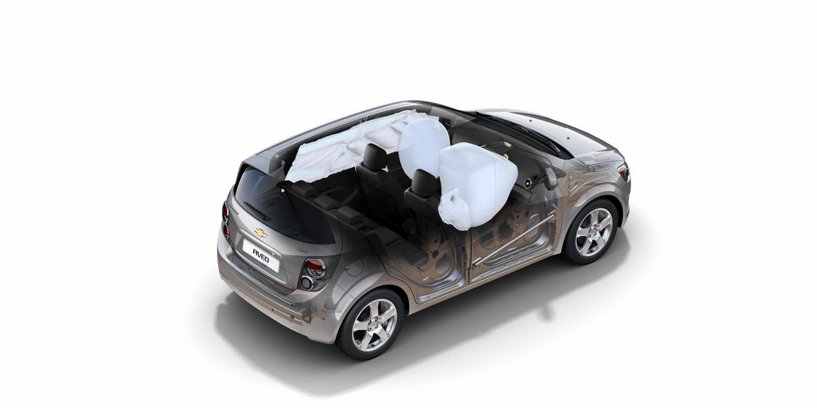 Uno de los puntos flacos de la anterior generación del Aveo era su seguridad, tanto activa como pasiva, y por lo que se ve han trabajado a fondo para que esto cambie. Para empezar, ahora se usa acero de alta resistencia en más del 60% de la estructura de la carrocería, el chasis está especialmente optimizado para disipar la energía en caso de impacto y por fin cuenta con seis airbags de serie. También la insonorización interior ha sido mejorada.