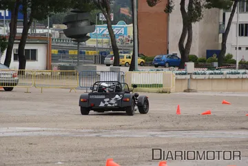 Durante el evento hicimos cuatro veces este circuito de slalom, siendo la primera de prueba y el resto cronometradas. Al salir el crono se pone en marcha, y para parar el tiempo es necesario atravesar la llegada y pararse al lado de un cono que debemos tocar. Si tiramos un cono se penaliza con 5 segundos, por lo que prima casi más hacerlo bien que hacerlo a lo loco.