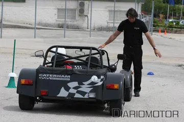 Van pasando los minutos y el resto de compañeros va montando, siendo nosotros los últimos de la lista para realizar la primera toma de contacto. Se hicieron en total dos tomas de contacto, realizando dos veces el slalom en cada toma. Poco a poco van entrando las ganas de coger el coche, el resto de los compañeros de curso se divierten derrapando de lo lindo con el Caterham mientras nosotros sólo podemos mirar.