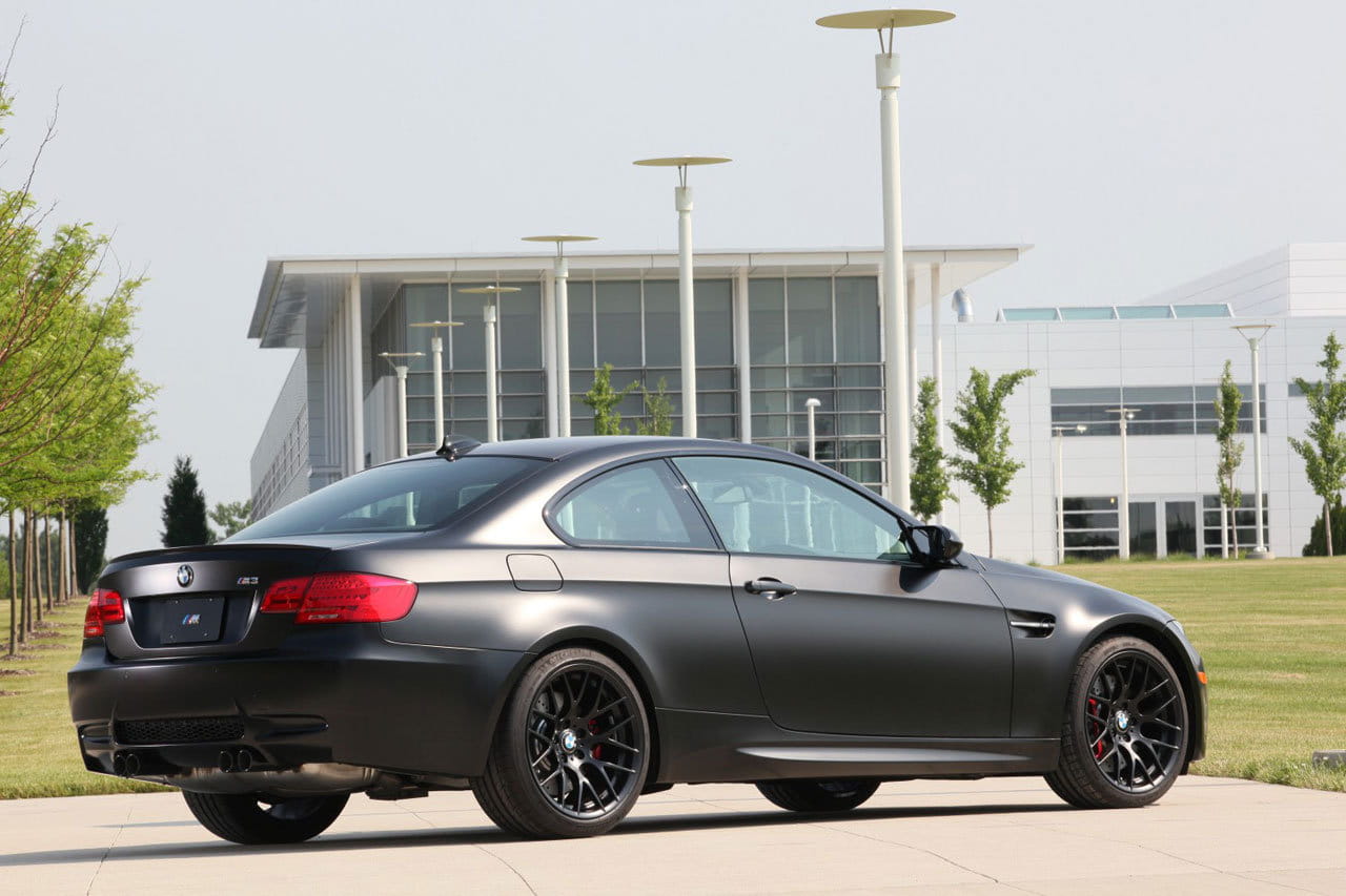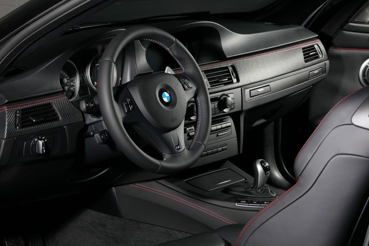 Los cambios que nos encontramos frente al M3 E92 estándar resultan llamativos. Lo que más resalta es la nueva pintura negro mate que recubre toda la carrocería. El color negro también se encuentra presente en los riñones de la parrilla frontal, en las salidas de escape y en las llantas de 19 pulgadas, que tienen el mismo diseño que en el BMW M3 GTS. El contraste a tanto negro lo ponen las pinzas de freno de color rojo. Además, la suspensión se ha rebajado en 10 mm.