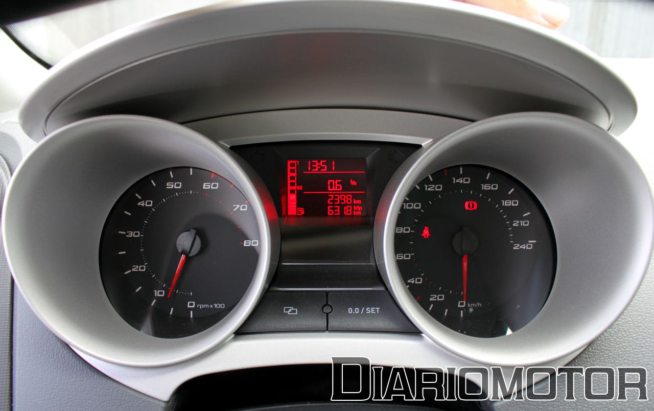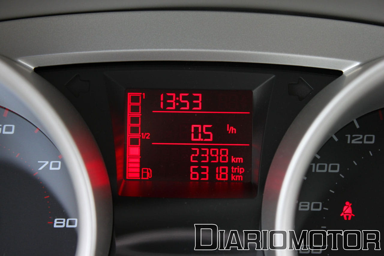 - Ordenador de a bordo: es muy sencillito, y se muestra en la pantalla LCD entre los dos relojes de la instrumentación. Tiene funciones de velocidad media, consumo medio, distancia recorrida y consumo instantáneo. Se cambia entre sus distintos modos con un botón ubicado en la palanca de los limpiaparabrisas.