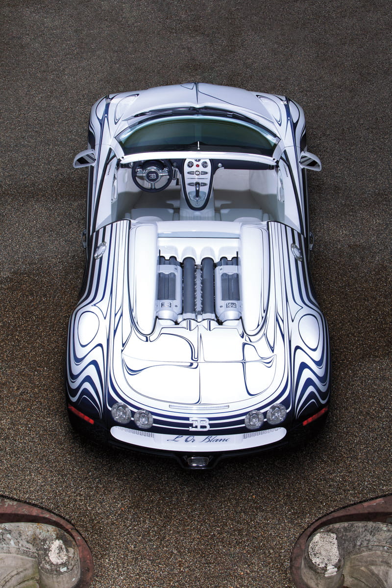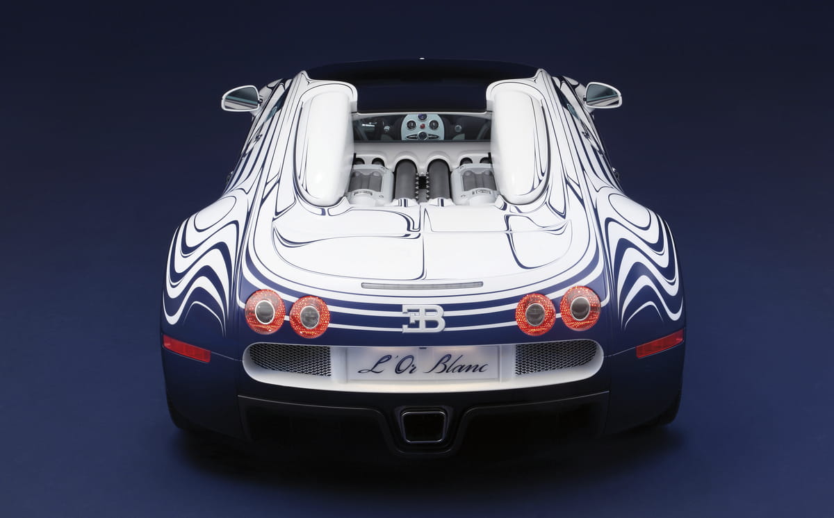 En este caso se trata del fruto de la colaboración entre la casa de porcelana Königliche Porzellan-Manufaktur Berlin (KPM) y Bugatti. Según la marca es el único vehículo que integra revestimientos de porcelana tanto en la carrocería como en el habitáculo. El Bugatti Veyron Grand Sport L’Or Blanc es un vehículo único con un precio estimado de 1.65 millones de euros, no obstante el acuerdo entre KPM y Bugatti continuará los próximos años, por lo que es muy probable que cualquier cliente caprichoso pueda encargar su propio Veyron con acabados de porcelana siguiendo este estilo.
