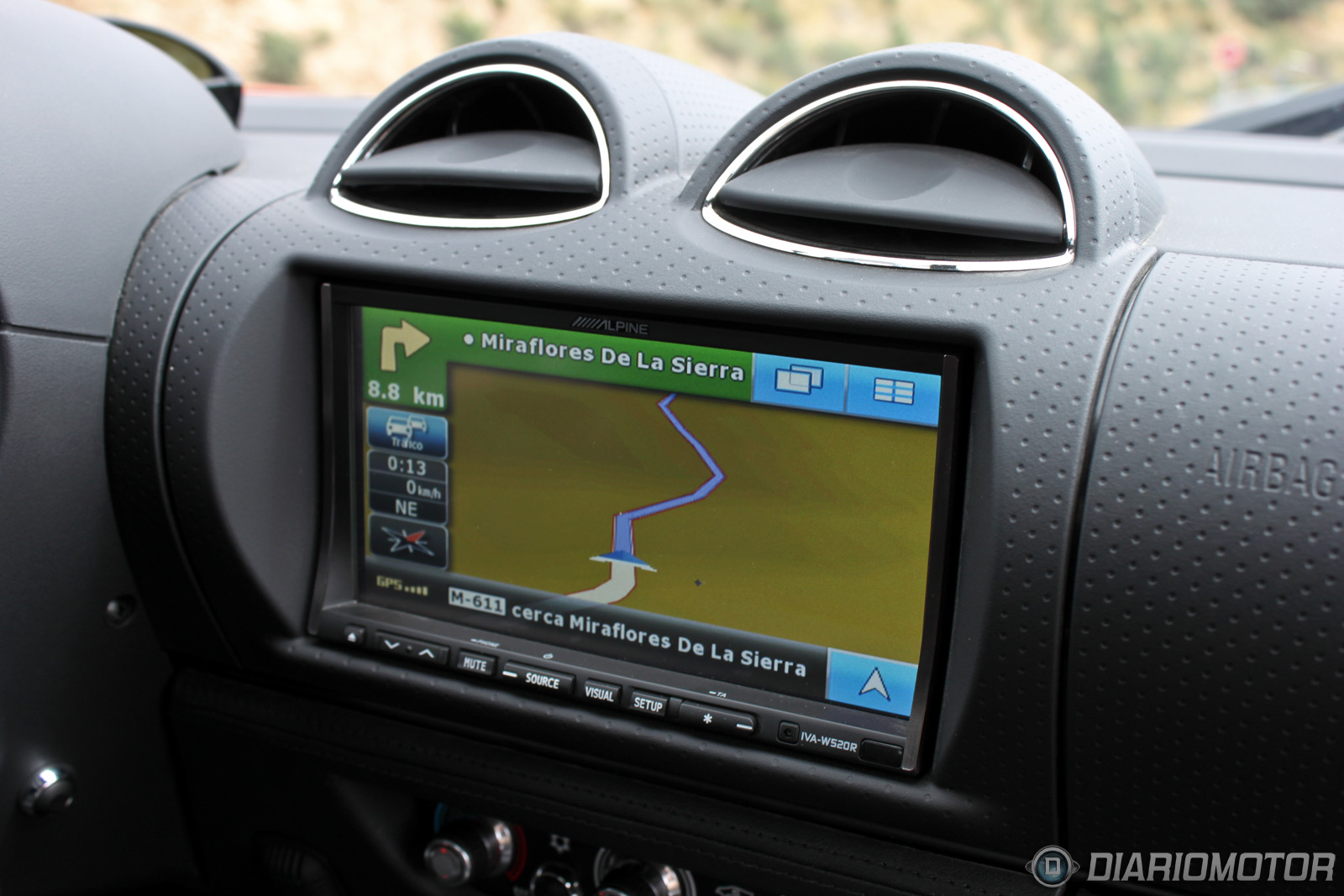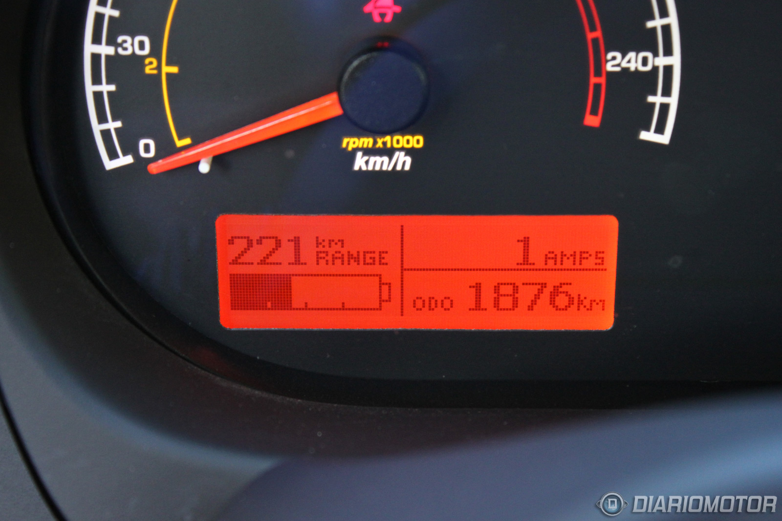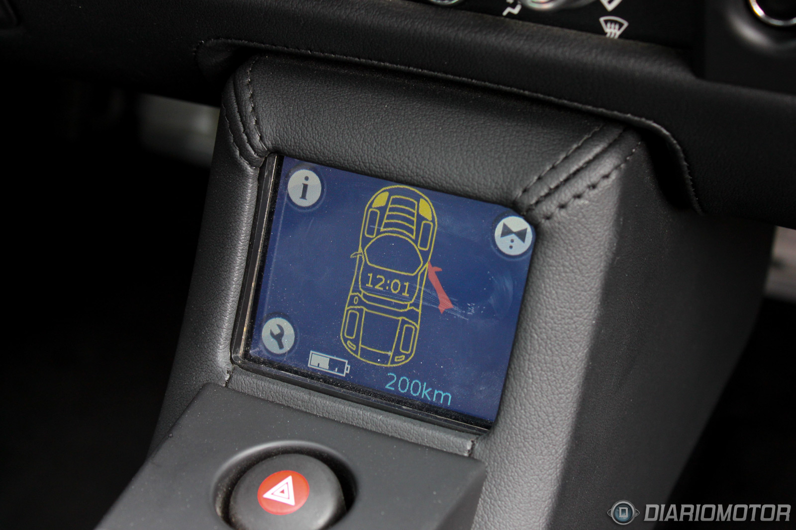 La posición de conducción tampoco resulta forzada, y en tres horas conduciendo no sufrí de incomodidades. El coche tiene una instrumentación muy sencilla. La consola central tiene dos aireadores superiores, y bajo los mismos hay un sistema de infotainment Alpine, con navegador, radio e incluso una conexión para iPod/iPhone. Los mandos del climatizador están bajo los mismos y aún más abajo hay una pequeña pantalla táctil multifunción que muestra la autonomía teórica del coche y otra información.