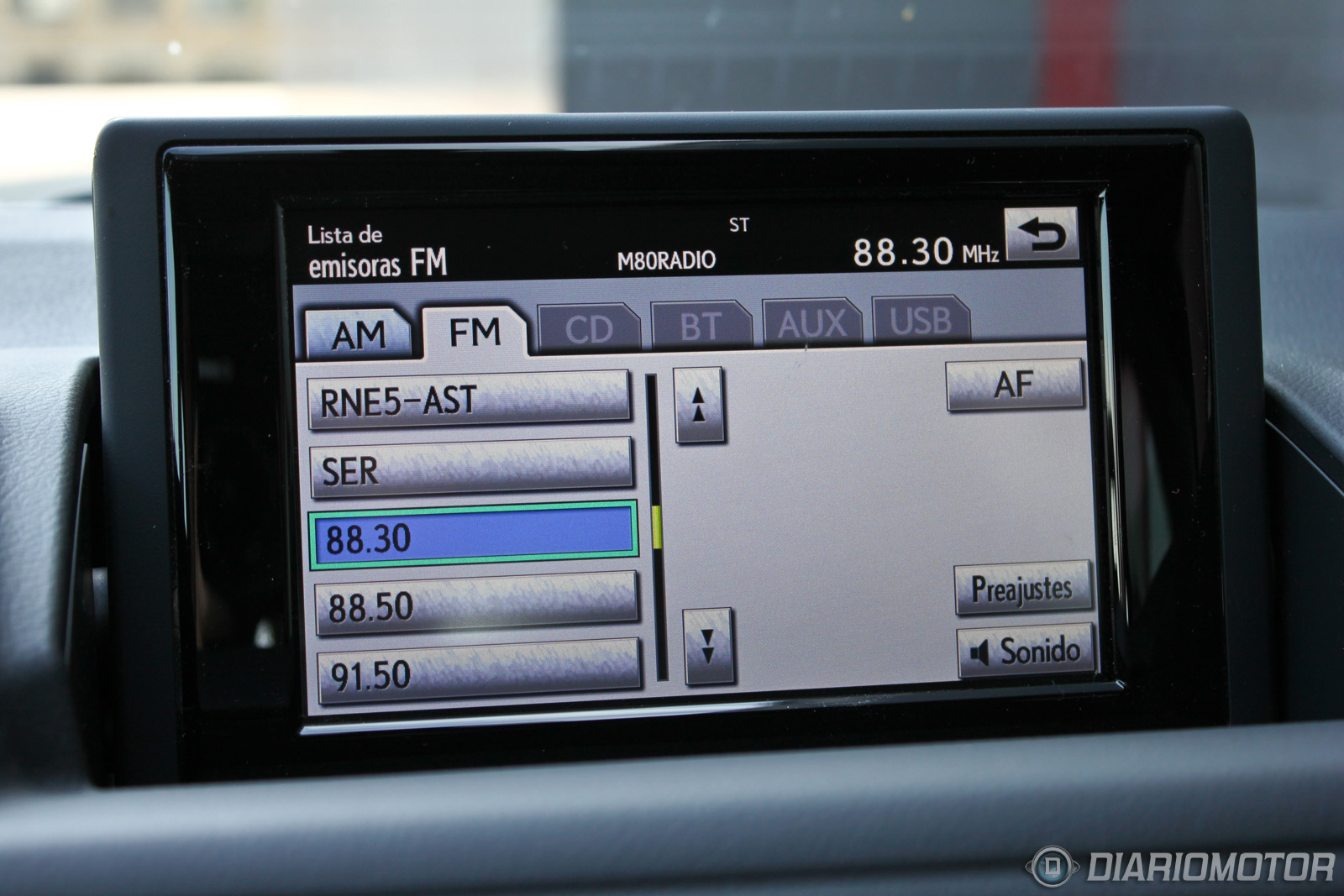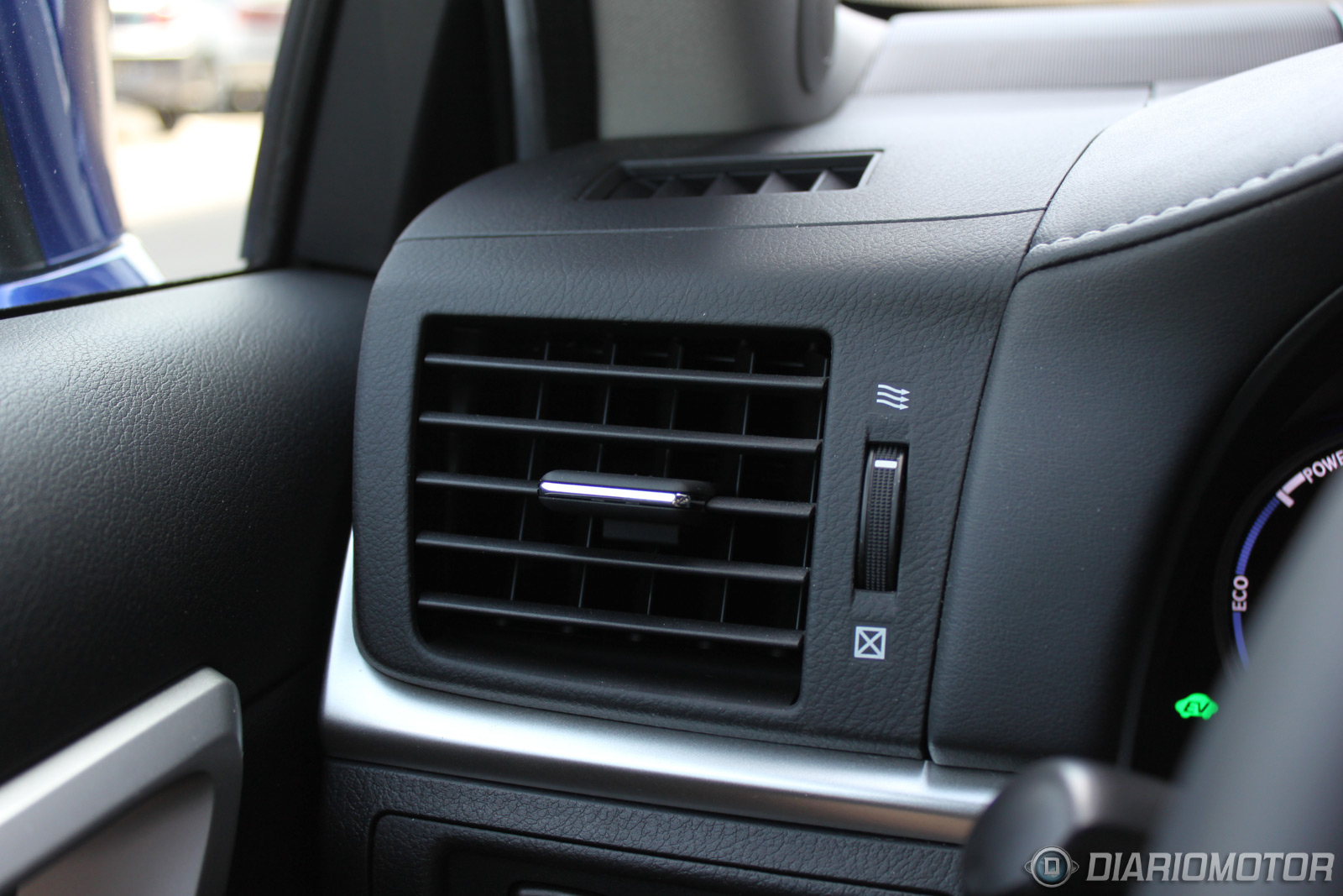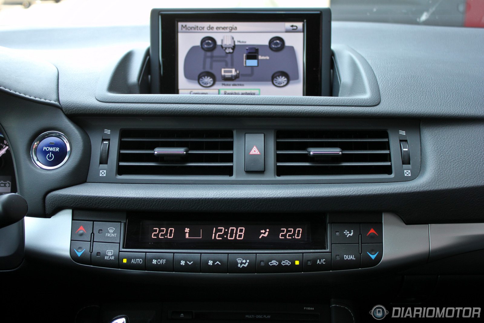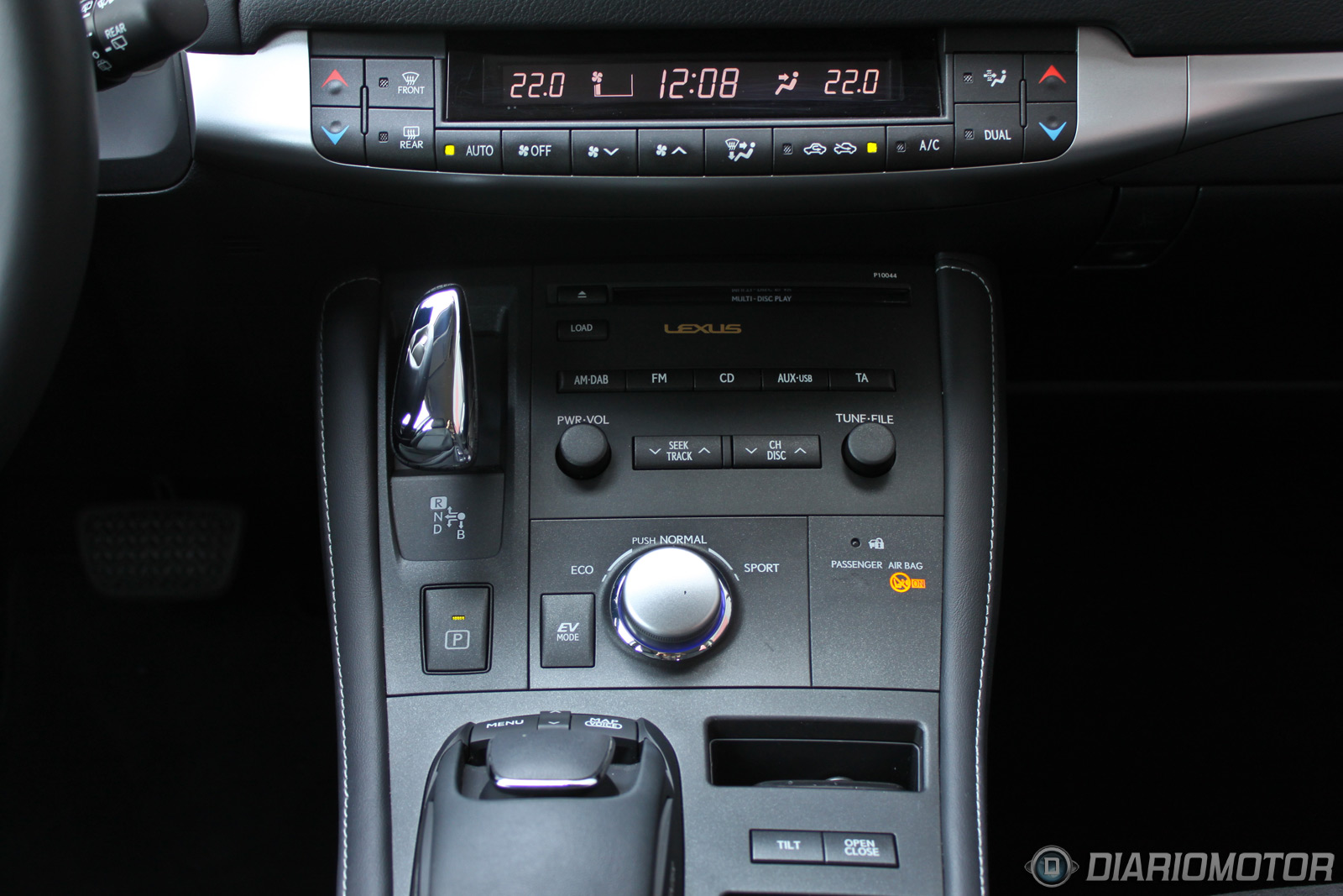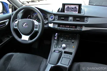 Es una posición baja, similar a la de un Audi A3 y desde luego muy alejada de la del Toyota Auris Híbrido, con el que sólo comparte motorización híbrida. Lo más destacado del habitáculo es el diseño, con una ancha consola central, profusa en botonería y con dos partes diferenciadas. La parte superior está presidida por una pantalla escamoteable de 7 pulgadas, bajo la que se extienden a lo ancho los controles de la climatización bizona, visualizables en una pantalla LCD al más puro estilo años 90, un curioso guiño.
