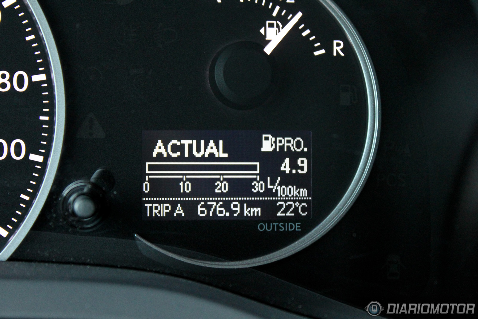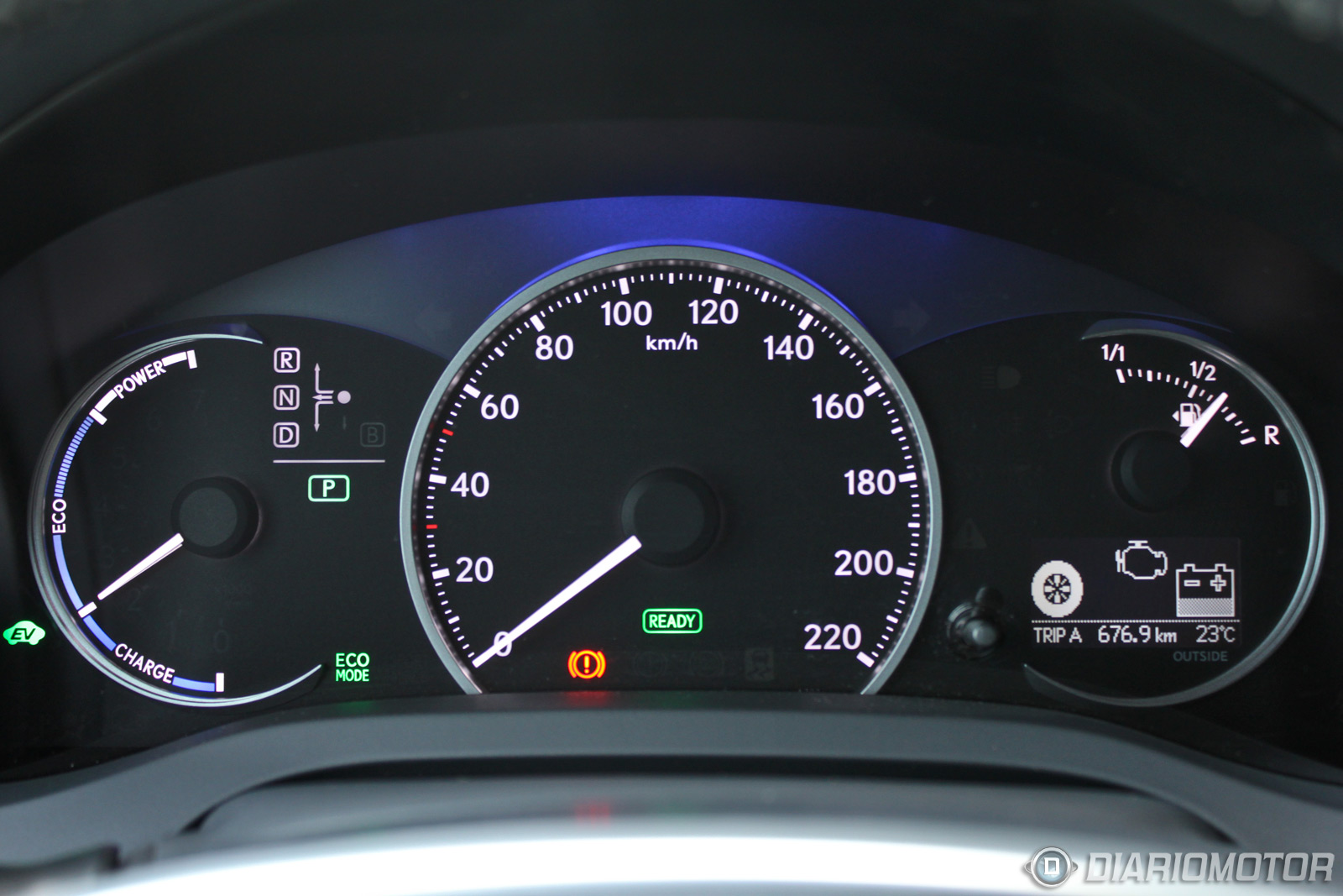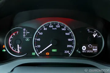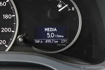 La instrumentación es propia de un híbrido, con un velocímetro en posición central, una pequeña pantalla con información del funcionamiento del sistema híbrido/ordenador de a bordo y un potenciómetro, similar al de otros híbridos de la esfera Toyota. Sin embargo, en modo Sport la retroiluminación pasa del azul al rojo y el potenciómetro se convierte en un cuentavueltas, aunque realmente no tengamos la posibilidad de cambiar de marchas, ni siquiera con relaciones prefijadas por el funcionamiento de la caja de cambios e-CVT.