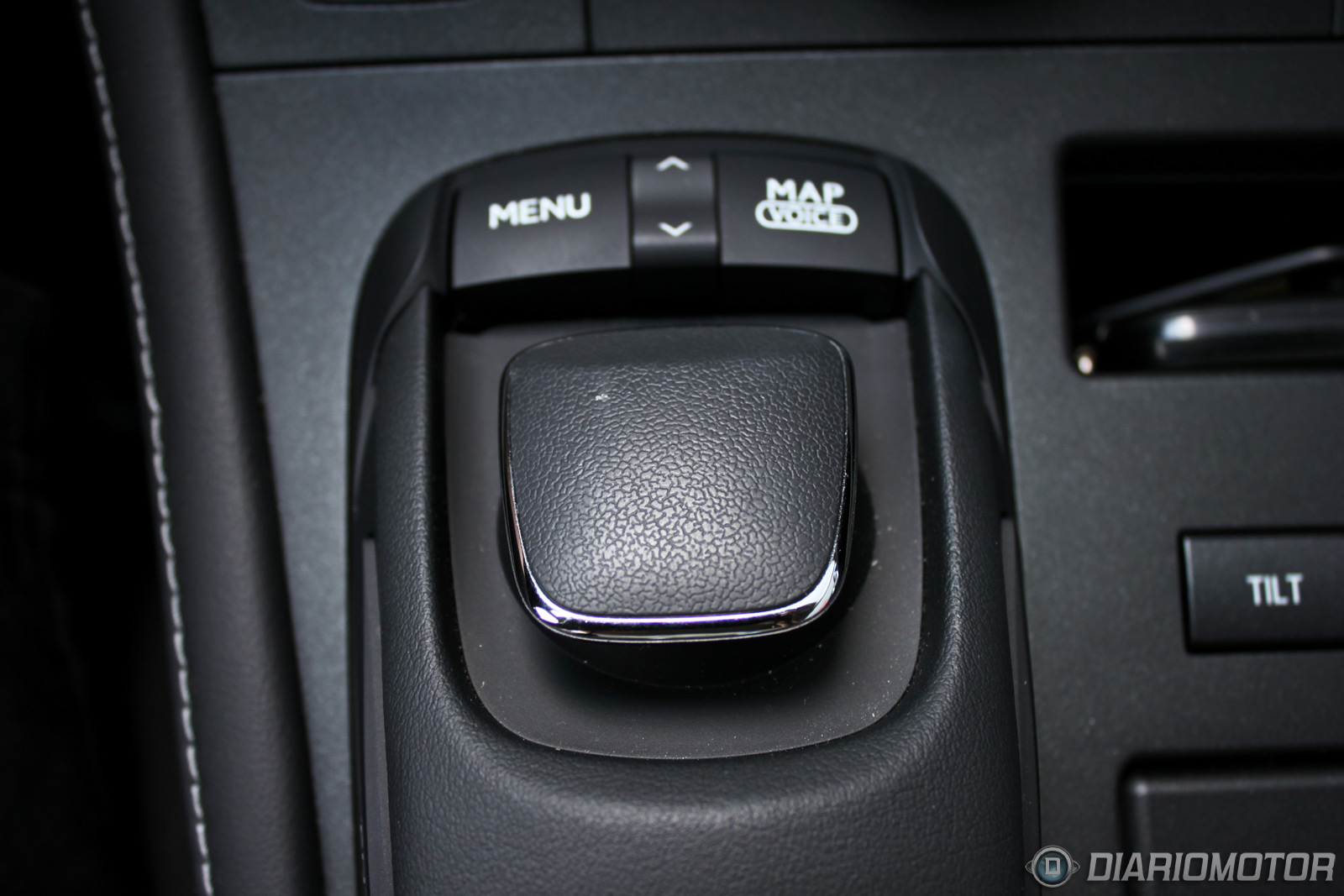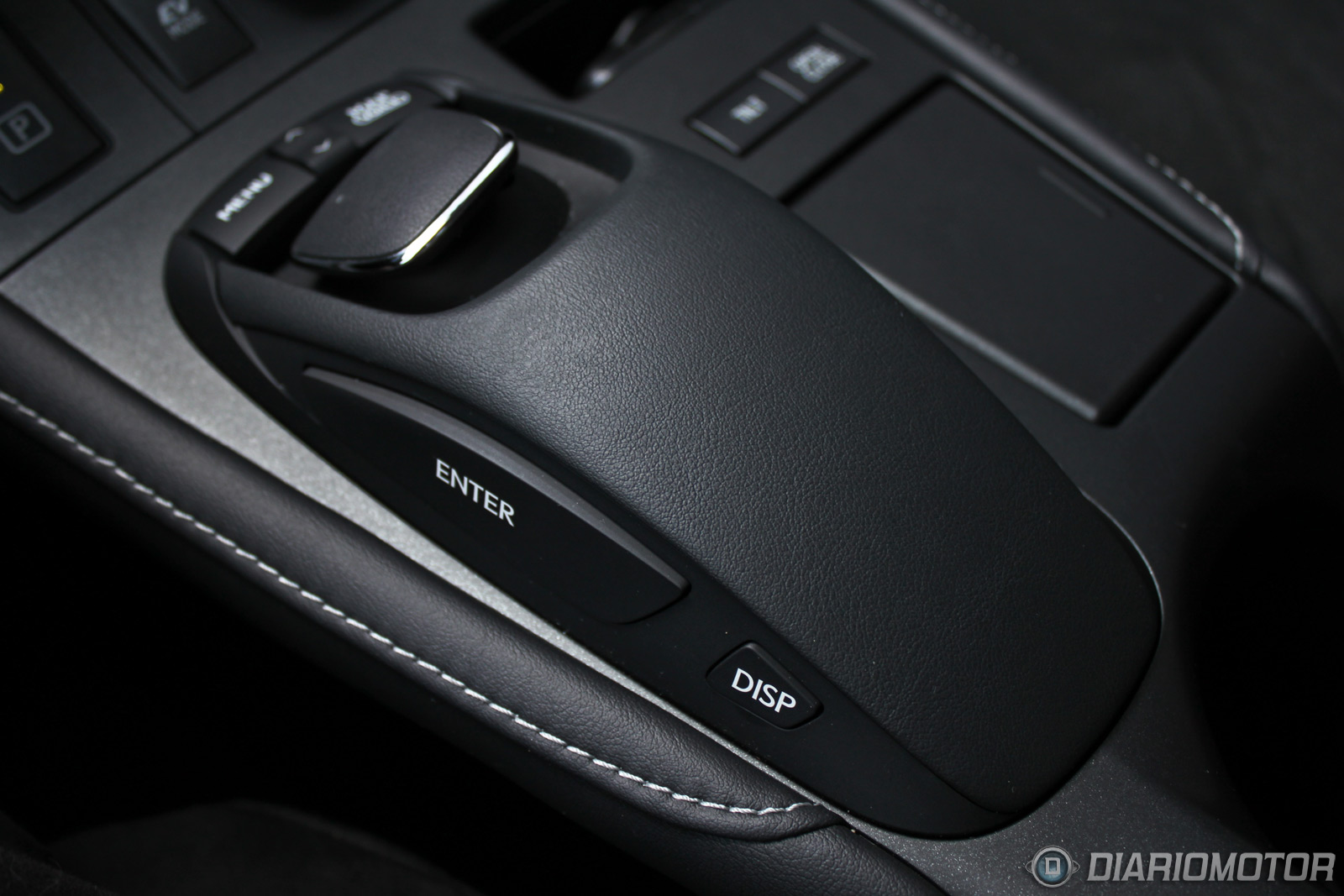 La parte inferior se extiende hasta la zona que hay entre los asientos. La palanca de cambios tiene la forma del mango de un bastón, y tiene un tacto agradable forrada en cuero. El equipo de infotaiment es una unidad individual y a la altura de nuestra mano derecha nos queda el “ratón”, un mando que maneja el puntero en la pantalla multifunción como si de un ratón de ordenador se tratase. Más sencillo e intuitivo de lo que parece. También contamos con el selector de los modos de conducción: Eco, Normal y Sport.