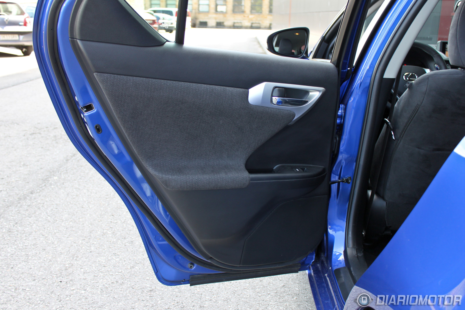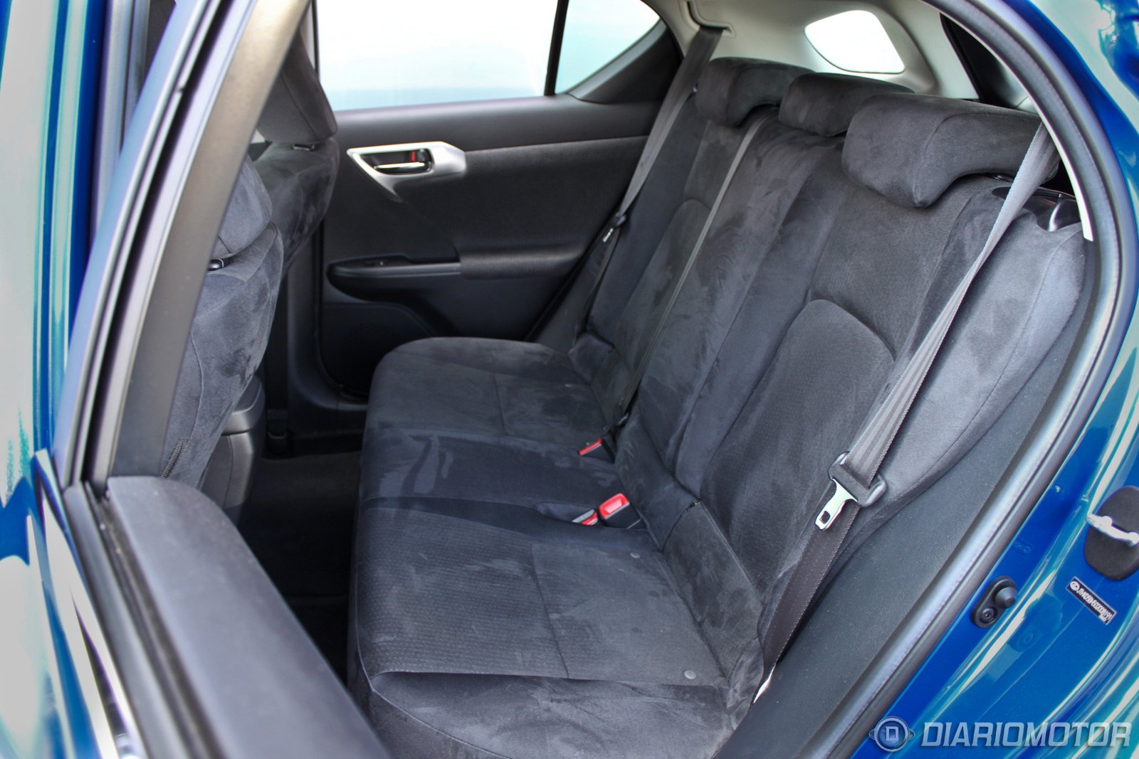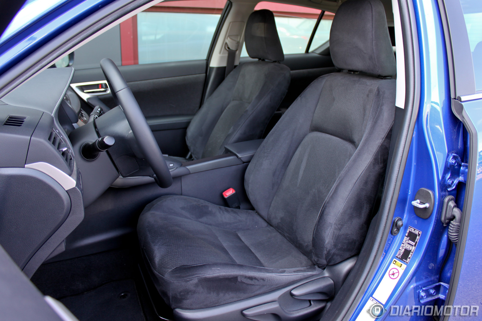 Me subo al asiento del conductor del Lexus CT 200h. Está forrado en Alcantara y es muy agradable, aunque es caluroso para el verano. Es bastante amplio, aunque la banqueta podría ser unos centímetros más larga. Los apoyos laterales son correctos, tiene regulación lumbar para el conductor y el asiento del acompañante es al igual que el del conductor regulable en altura. El volante es también ajustable en altura y profundidad, encontrar la posición de conducción correcta no supone problema alguna.