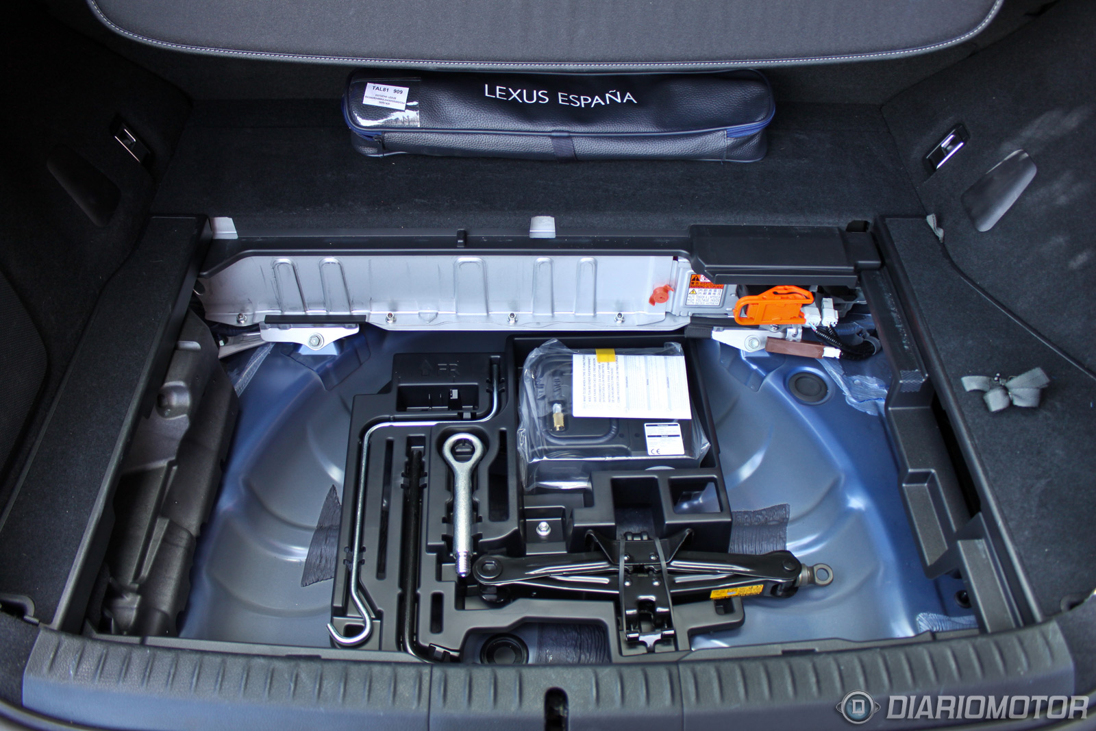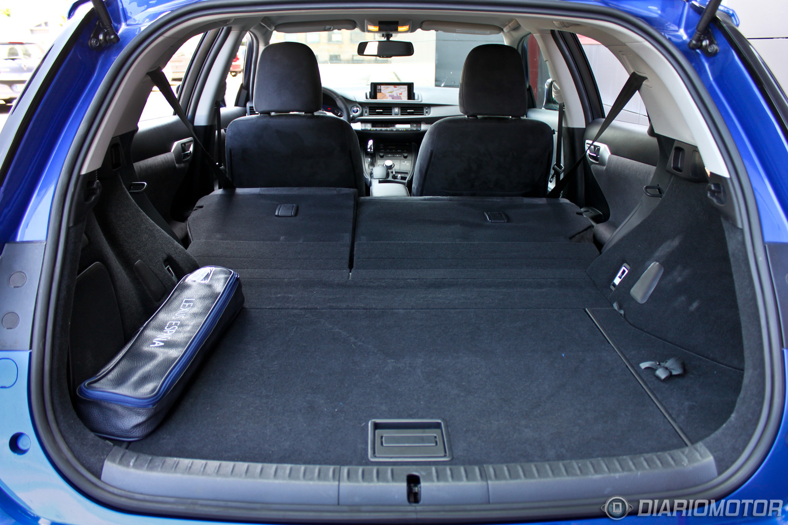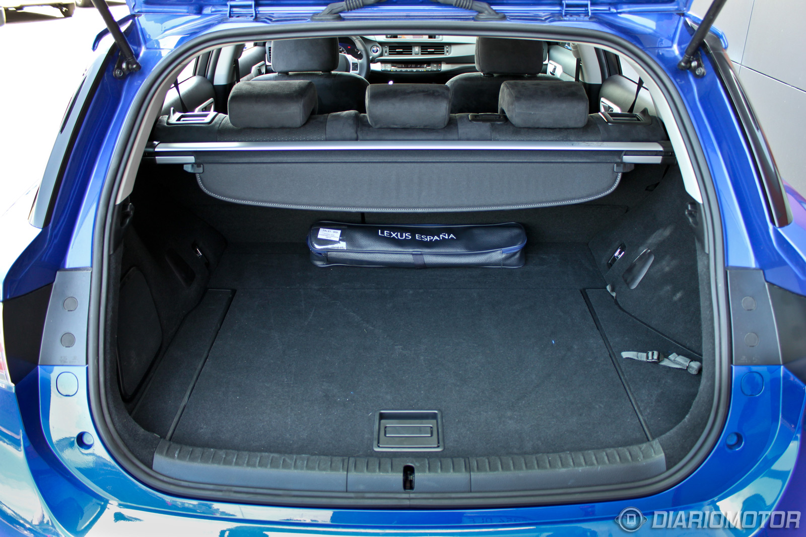 Prácticamente he hecho una mudanza en el Lexus CT 200h, que ha resultado tener un maletero sorprendentemente capaz. A la vista parece pequeño, pero tiene formas muy aprovechables, un piso muy plano y tiene ganchos laterales para que la carga no se desmande. Bajo el piso hay un compartimento con 100 litros adicionales, que elevan la capacidad total a 375 litros. Si quitamos este hueco veremos parte de las baterías del sistema híbrido y el hueco donde debería estar la rueda de repuesto, reemplazada por un kit antipinchazos.