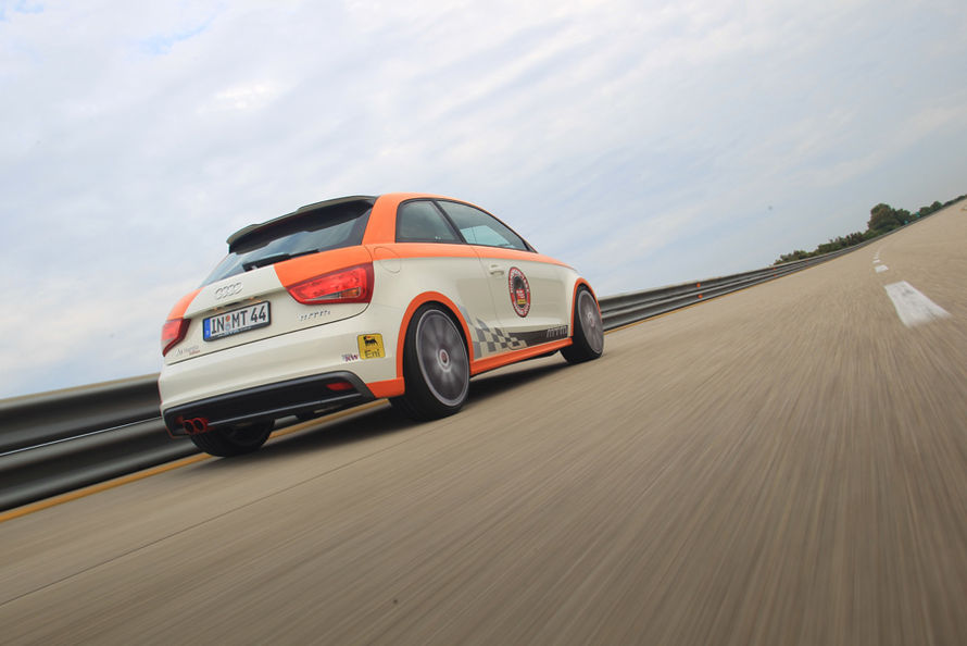 Fue puesta a punto su aerodinámica rebajando suspensiones e incorporando unas llantas especiales de 19” con unas cubiertas para evitar generar turbulencias y disminuir el rozamiento con el aire. Pero lo que por fuera parece un Audi A1 “normal y corriente”, dotado de cambio manual de seis velocidades, tracción trasera y diferencial de deslizamiento limitado, esconde en su interior una auténtica bestia.