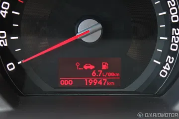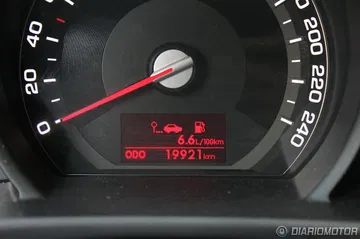 Los números son muy grandes y de lectura óptima. A la izquierda hay un pequeño cuentavueltas y a la derecha dos relojes pequeños para temperatura del agua y nivel de combustible. Es una disposición muy parecida a la que por ejemplo tiene el Citroën DS3. El ordenador de a bordo se puede ver en la pantalla LCD presente en la parte baja del velocímetro, con el inconveniente de que para cambiar entre los modos hay que pulsar el botón “Trip” situado a la izquierda de la instrumentación, bastante poco a mano.
