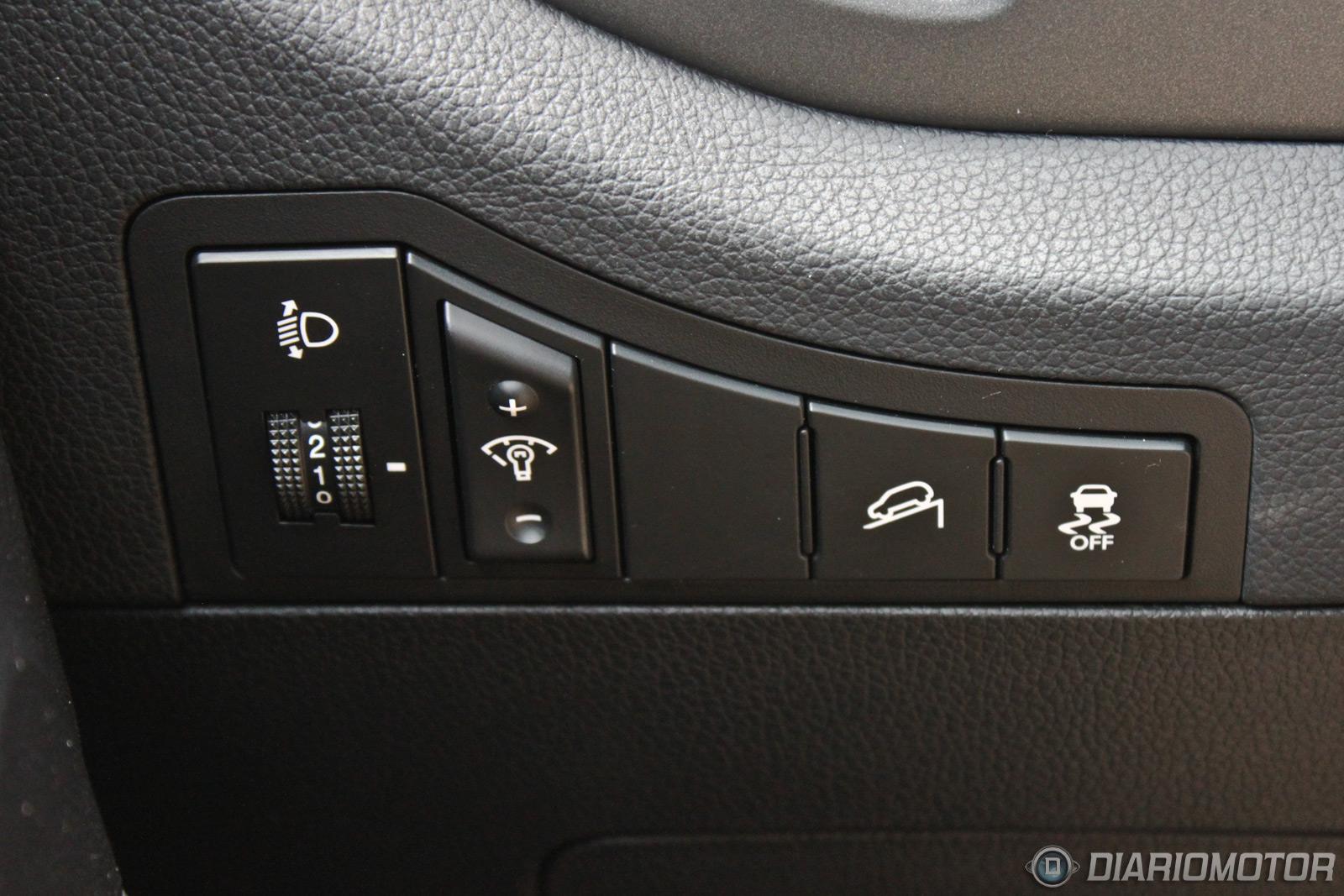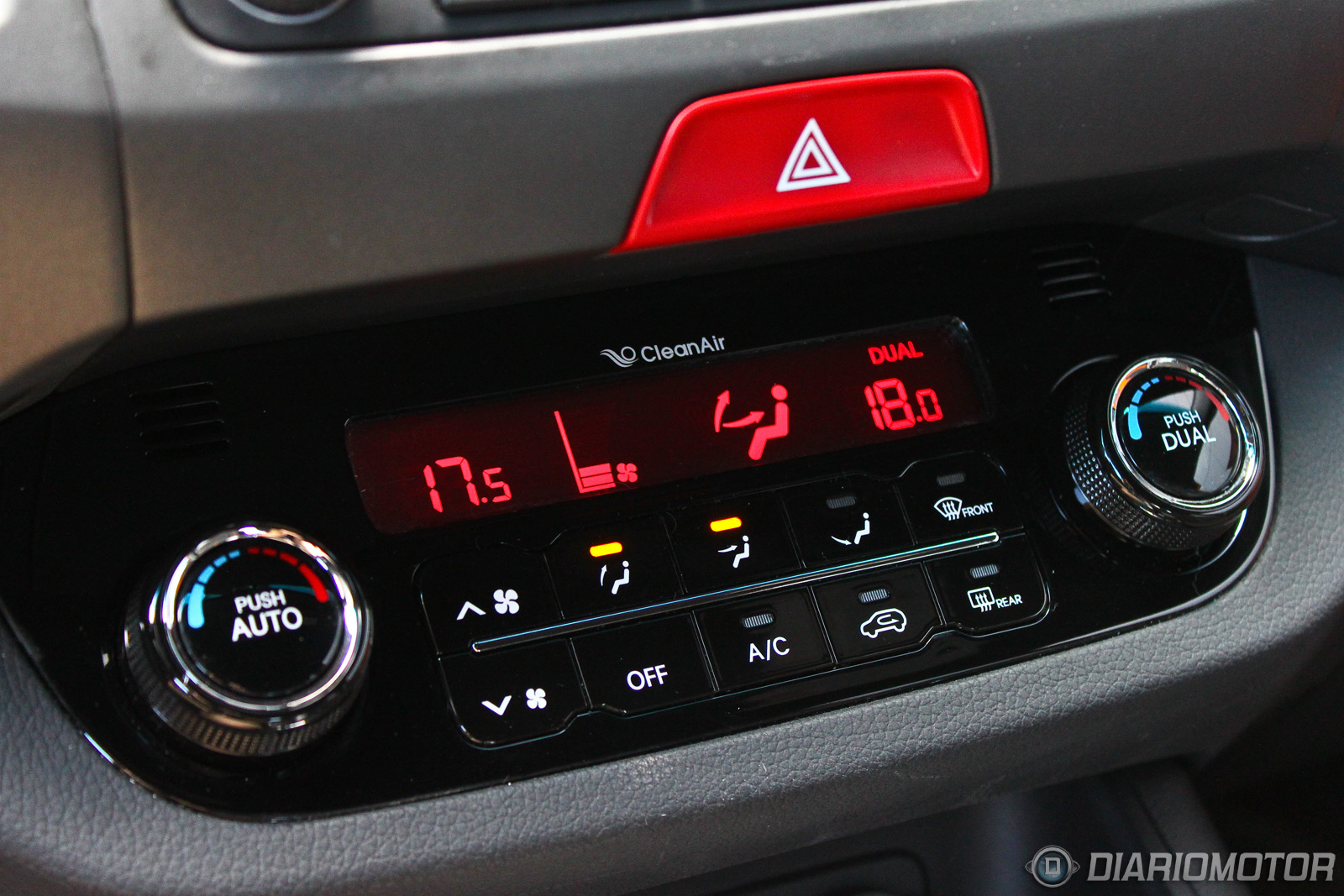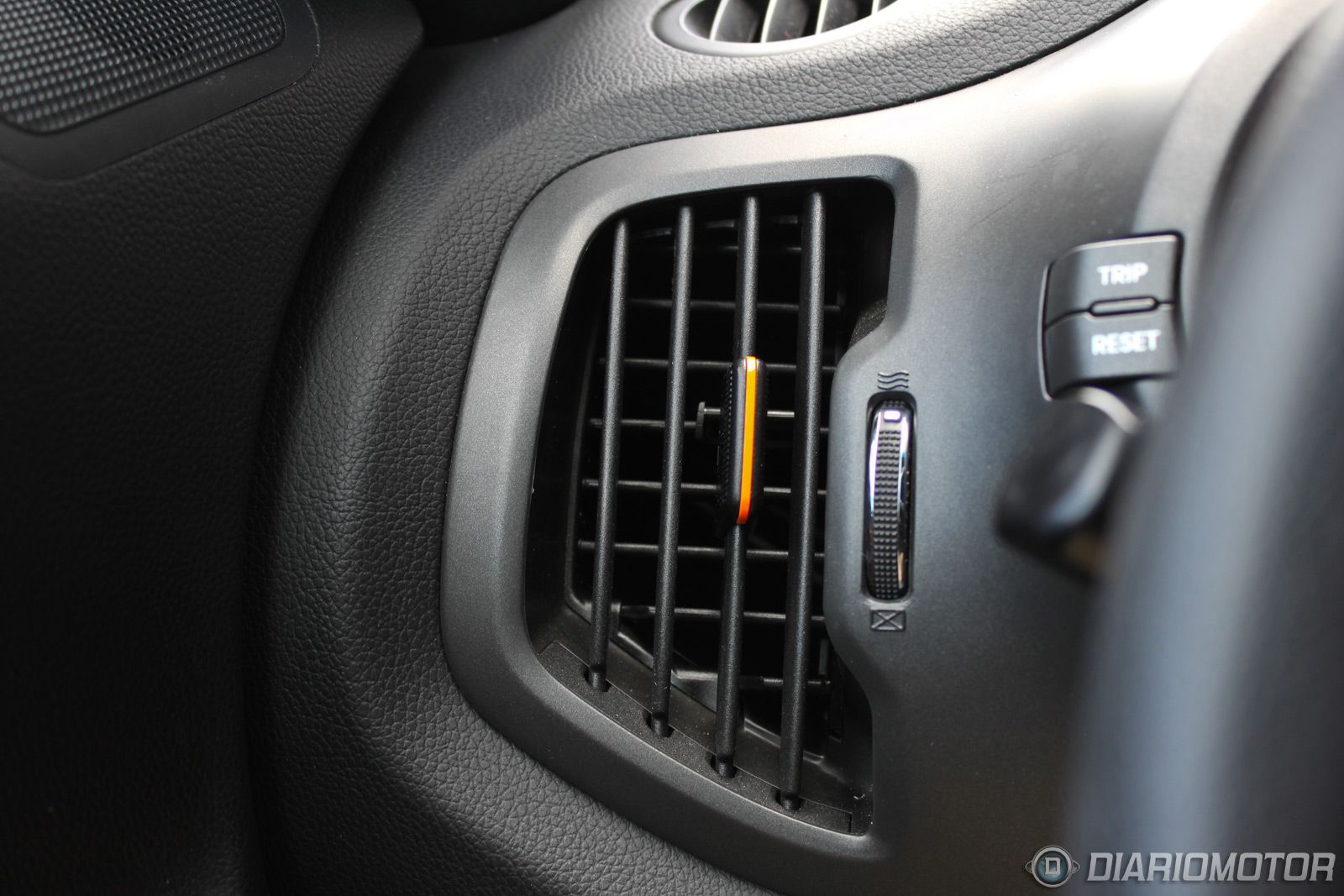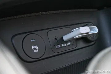 La consola central es muy sencilla y de uso intuitivo. La parte superior corresponde al sistema de infotainment, coronado por el testigo de desconexión del airbag del pasajero, muy visible. Es un equipo de uso sencillo al que únicamente criticamos que la ruleta derecha queda lejos para el conductor. El climatizador no queda bajo a pesar de que lo pueda parecer, con las ruletas que interesan al conductor a mano. En la parte inferior de la consola se encuentra un espacio para dejar objetos y las entradas auxiliares del equipo de audio.