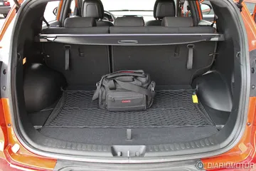 Hay que agacharse ligeramente para abrir el gran portón de maletero, pero gracias a ello podemos cargar objetos sin esforzarnos mucho: la boca de carga es baja y no hay salto entre la misma y el suelo de carga. Es un maletero grande, tiene 564 litros de capacidad en un vehículo con un interior muy amplio y menos de 4,50 metros de longitud. Podemos hablar de que el espacio en el Kia Sportage está muy bien aprovechado, tiene uno de los maleteros más grandes de entre SUV similares.