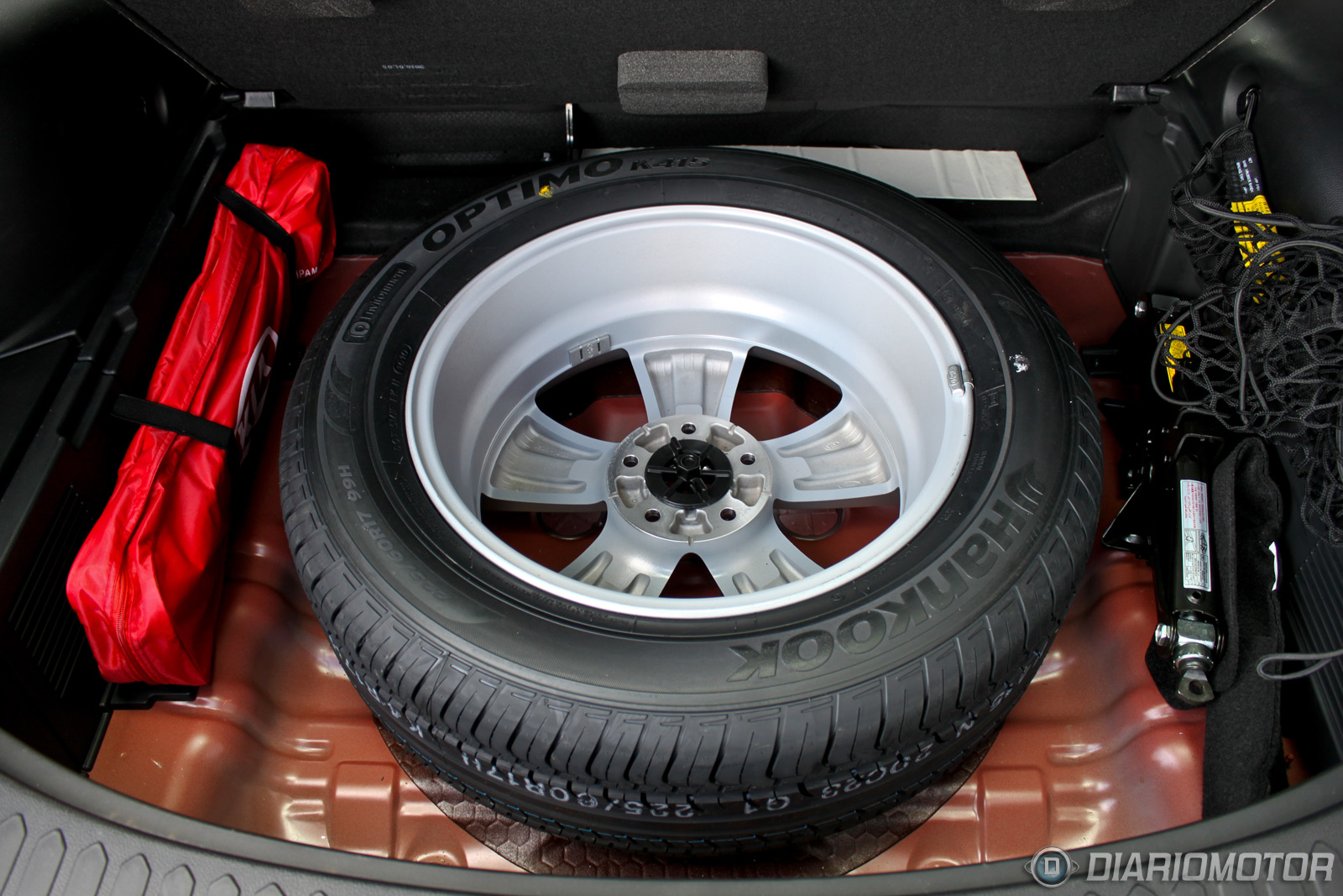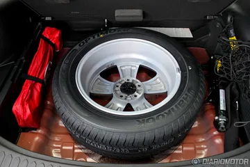 Con los asientos abatidos se forma una superficie de carga casi plana de 1.353 litros de volumen. Bajo el piso hay una rueda de repuesto a tamaño completo con llanta de aleación y herramientas. Es elogiable que la rueda sea completa, pero es aún más elogiable que tenga una llanta de aleación idéntica a las que lleva el coche normalmente y no la habitual llanta de chapa oscura. El maletero está iluminado y cuenta con una toma de corriente de 12 voltios para el uso que se desee.