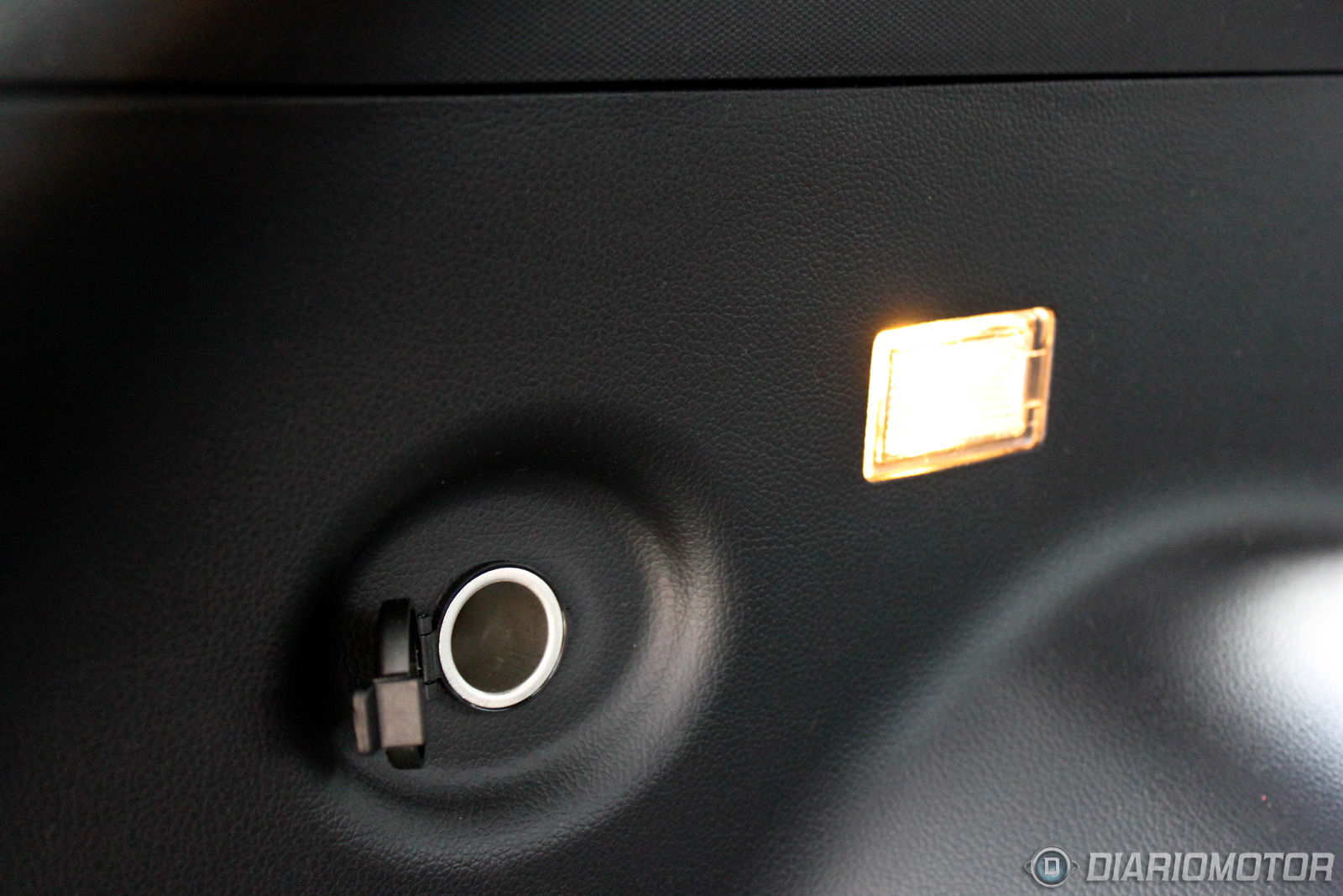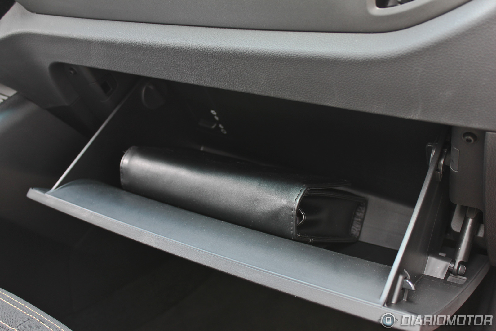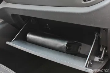 Las puertas tienen un hueco específico para grandes botellas, y mucho espacio para fundas de gafas (también hay un portagafas), revistas o mapas. La guantera es relativamente pequeña, y no está ni tapizada o iluminada, aunque curiosamente sí está refrigerada. Podríamos refrigerar una botella de medio litro, no más. Un último detalle interesante, los parasoles tienen una pestaña de plástico que incrementa su anchura cuando lo colocamos en la ventanilla, nos protege más eficazmente de la luz lateral.