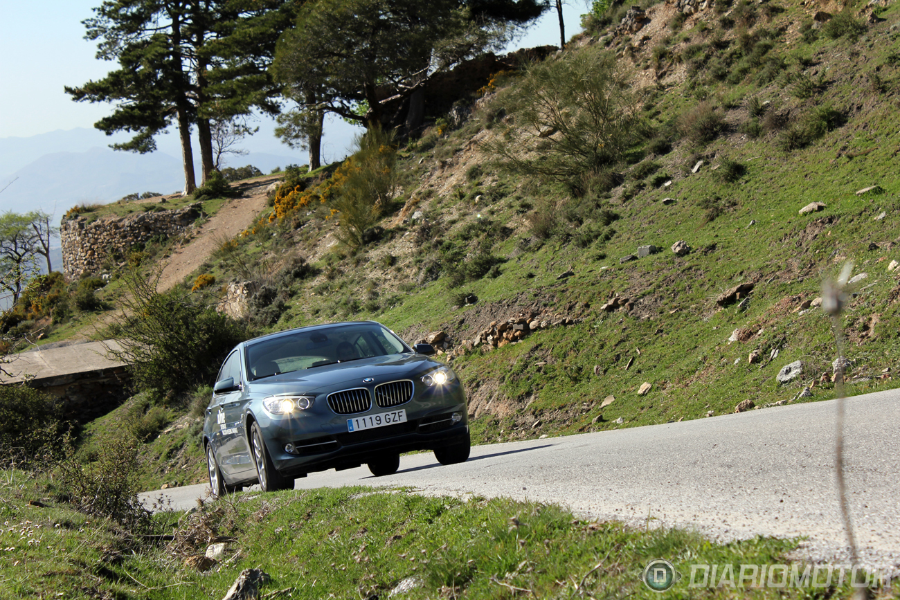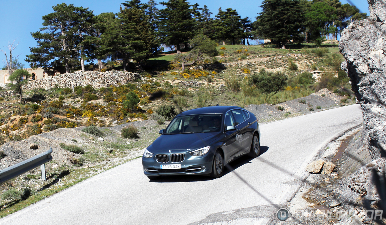 Juanma tenía más interés en probar el buque insignia, así que a mí me tocaron las llaves del Serie 5 GT: “el engendro”. Un vehículo basado en el Serie 7, con una línea rompedora, de bonito morro y una zaga que choca tanto como Susan Boyle embutida en un bikini rojo y tanga. Sin embargo, lo más extraño de todo es la mezcla de enfoques que han hecho: es una berlina a medio camino con un monovolumen que comparte rasgos con un coupé gracias a la caída del techo hacia atrás… una ensalada no apta para cualquiera.