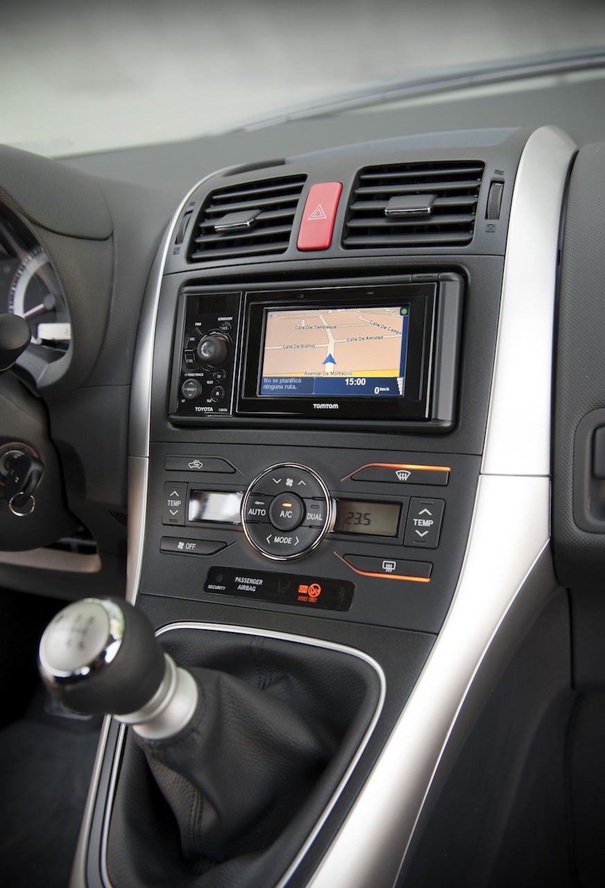 Toyota aumenta las opciones para contar con navegador GPS en el Auris gracias al Pack Connect que añade el navegador TNS 410 TomTom con pantalla extraíble de 4,3 pulgadas. En el HSD existe la opción de este navegador con reproductor de DVD integrado. En general el Toyota Auris Active incorpora a partir de ahora manos libres Bluetooth, control y limitador de velocidad de crucero o climatizador bizona como novedades. Sin embargo se sigue echando en falta que el control de estabilidad no sea de serie, en los Live y Edition es opcional.