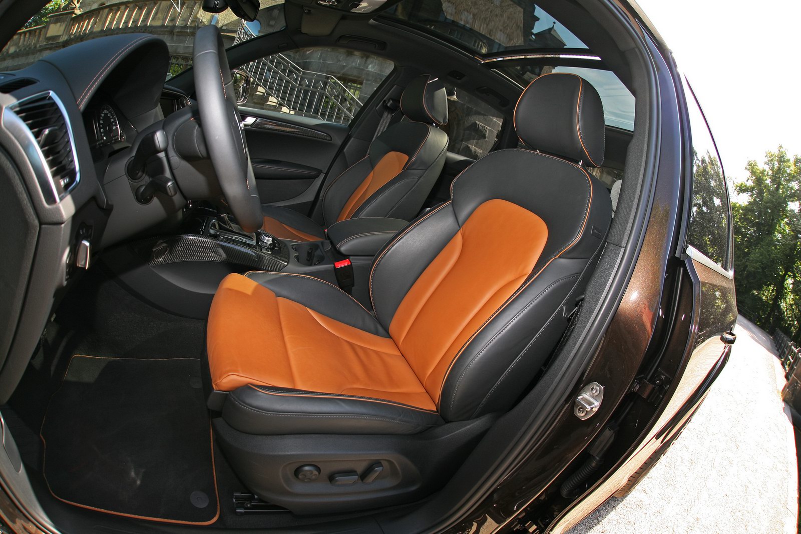 Viendo la foto inicial, se aprecia que el kit estético montado en el coche no es muy llamativo, si bien ayuda a ofrecer cierta diferenciación respecto al Q5 convencional. No obstante, lo que que más atrae poderosamente la atención es el espectacular juego de llantas que han montado, digno de un Hummer H2 o similar. Son llantas multirradio de 22 pulgadas, calzadas en cuatro neumáticos 265/35 R22 modelo Vredestein Ultrac Sessanta. Para mi gusto son totalmente desproporcionadas, pero para gustos están los colores.