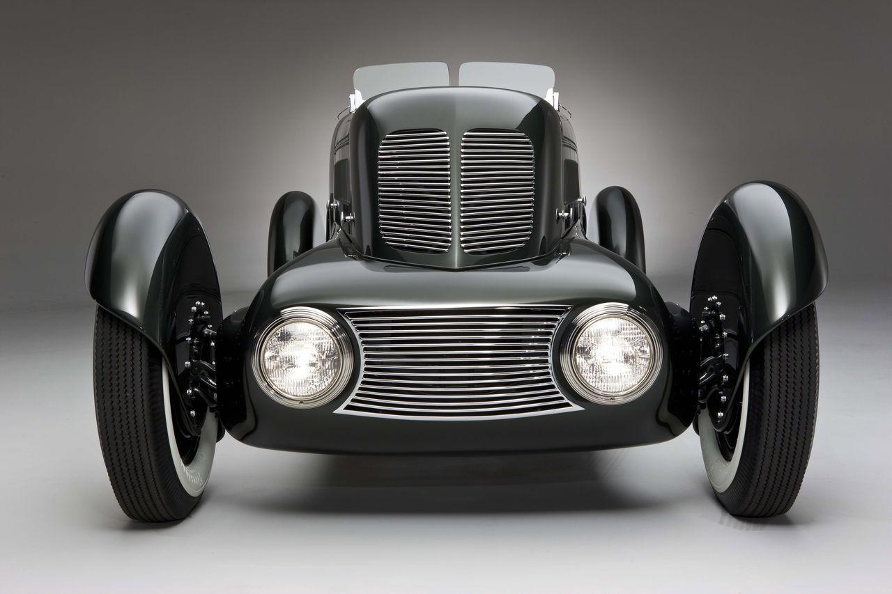 La primera versión – trabajada con el diseñador E.T. “Bob” Gregorie – no satifizo al completo a Edsel, que lo veía muy alto y poco deportivo. Tras mucho trabajo y varios rediseños posteriores a la versión de 1934, en 1939 se comenzó a trabajar en la versión final que podéis ver en las imágenes, terminada un año después. Es un diseño estilizado, recuperado tras muchos años olvidado en un almacén, restaurado por RM Restorations con motivo del Pebble Beach Concours d’Elegance, casi 80 años después de su creación.