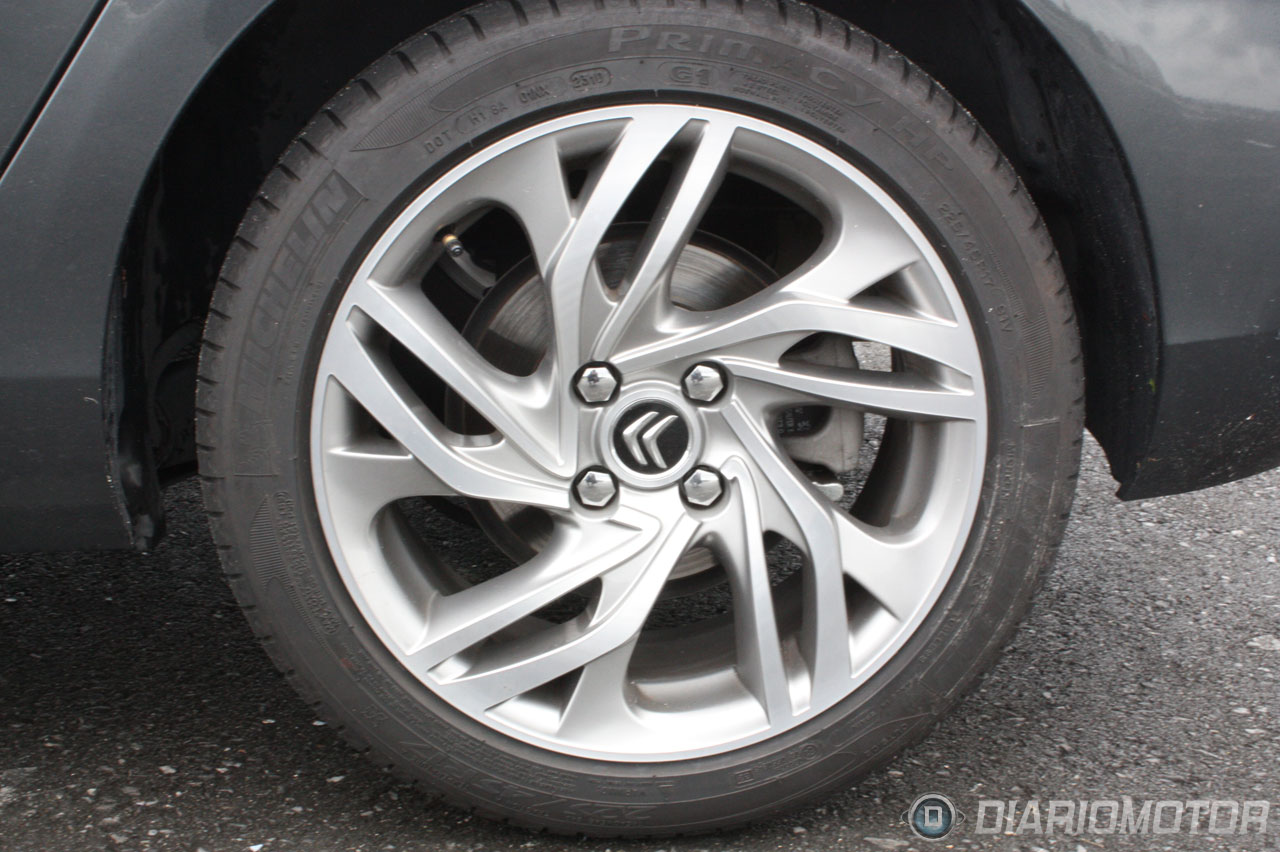 Las llantas de esta unidad, del acabado Exclusive, es uno de los elementos que se heredan de la filosofía anterior de Citroën, con un diseño bastante atrevido de cinco radios cada uno de ellos formado por tres radios que se enrollan entre ellos con formas orgánicas. Los compradores más conservadores seguro que preferirán otro diseño más clásico.