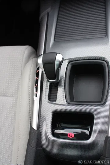 Este espacio se consigue gracias a su minúscula palanca de cambio, cuyo uso es cómodo en el día a día pero cuya forma y tamaño llama la atención la primera vez que la vemos. Además, justo al lado de la palanca también hay un pequeño hueco que permite dejar algunas monedas.