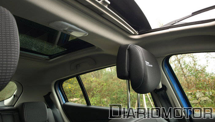 Un rectángulo medianamente grande deja pasar la luz a través de un filtro solar, obligatorio en este tipo de techos, y puede configurarse su posición a través de una rueda situada muy cerca del retrovisor interior. Aparte de la posición de “techo cerrado” cuenta con una posición de inclinación simple y varias posiciones de apertura intermedia; a partir de la primera se despliega en la parte delantera un cortavientos que disminuye el ruido del aire.