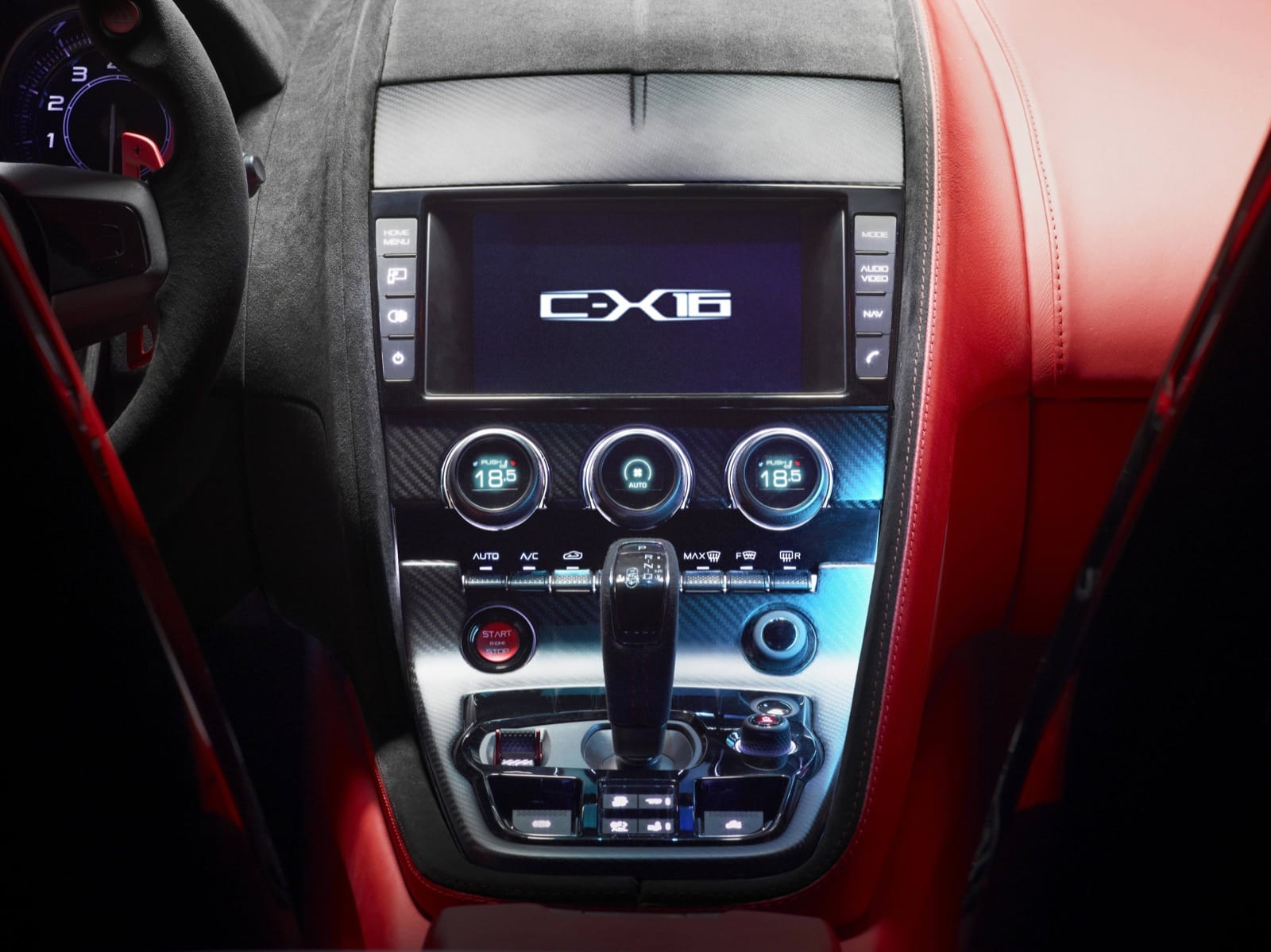El Jaguar C-X16 es todo un purasangre. Deportivo biplaza con arquitectura de motor delantero y tracción trasera para alcanzar la distribución de pesos perfecta del 50:50. Bajo su generoso capó un buen motor V6 de 3.0 litros sobrealimentado para desplegar 380 CV de potencia y 450 Nm de par máximo. Pero eso no es nada. Al menos este prototipo, está equipado de un sistema híbrido con recuperación de energía de las frenadas (similar al KERS de la Fórmula 1) que apoya al motor de combustión o incluso lo sustituye completamente a bajas velocidades y además es capaz de desarrollar 95 CV y 235 Nm extra accionando un botón situado sobre el volante.