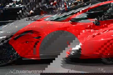 Una vez abierta la puerta, nos vamos a su interior, que tampoco ha nacido para levantar indiferencias. Con una combinación de colores y materiales que inspira deportividad, nos encontramos con tonos negros y rojos, así como el abundante empleo de piel vuelta y fibra de carbono por doquier, en elementos como la consola central, salpicadero o volante. La instrumentación cuenta con esferas con fondo blanco e iluminación en color rojo, todo ello precedido con el típico volante achatado en su parte inferior con las levas para el cambio situadas detrás de él.