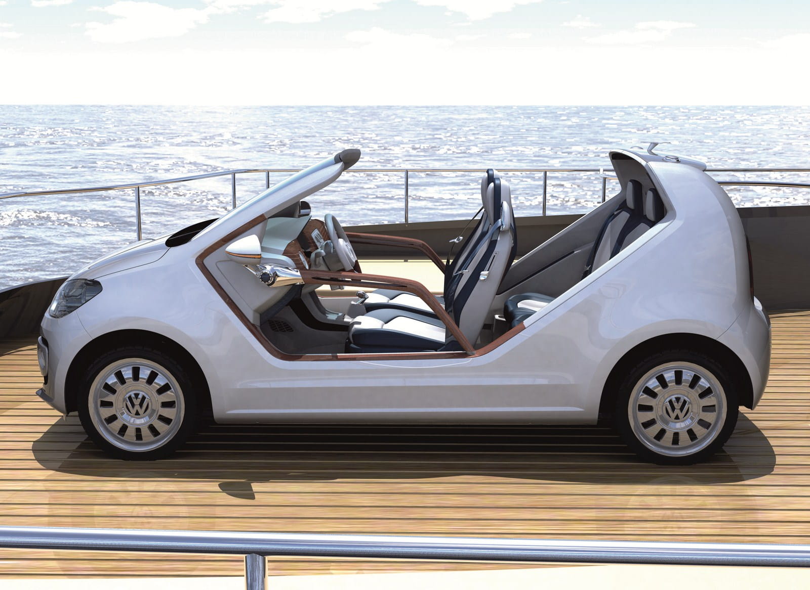 ¿Llegará algún día el Volkswagen Buggy Up! a producción? Aunque no parezca más que un experimento, la respuesta es bastante difícil por el momento, y podría tener opciones. Otro de estos Up! “especiales” es el Volkswagen Up! Azurra. En este caso, de su diseño se ha encargado dos pesos pesados: Walter de Silva y Giorgetto Giugiaro, con la inspiración puesta en el mundo de la náutica. También en este caso nos encontramos ante un vehículo puramente recreacional.