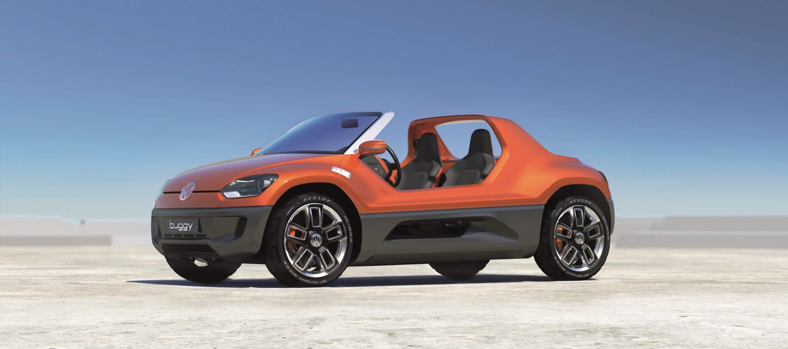 Uno de los más llamativos, sin duda, es el Volkswagen Buggy Up!, en este caso con una carrocería totalmente rediseñada y únicamente dos plazas. Su filosofía sería la de ser un coche puramente lúdico, recuperando el espíritu de aquellos Volkswagen Beetle de hace unas décadas modificados para las playas de la costa oeste norteamericana. Y, quizás, precisamente ese espíritu esté mucho más cerca de los Volkswagen Up! que de los Beetle actuales. Su interior ha sido realizado a prueba de remojones de agua y de arena, mientras que sus neumáticos son unos no impactantes visualmente 205/40 R18.