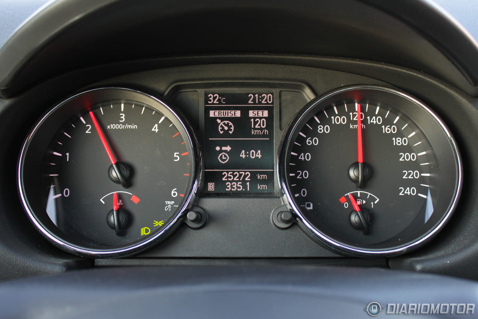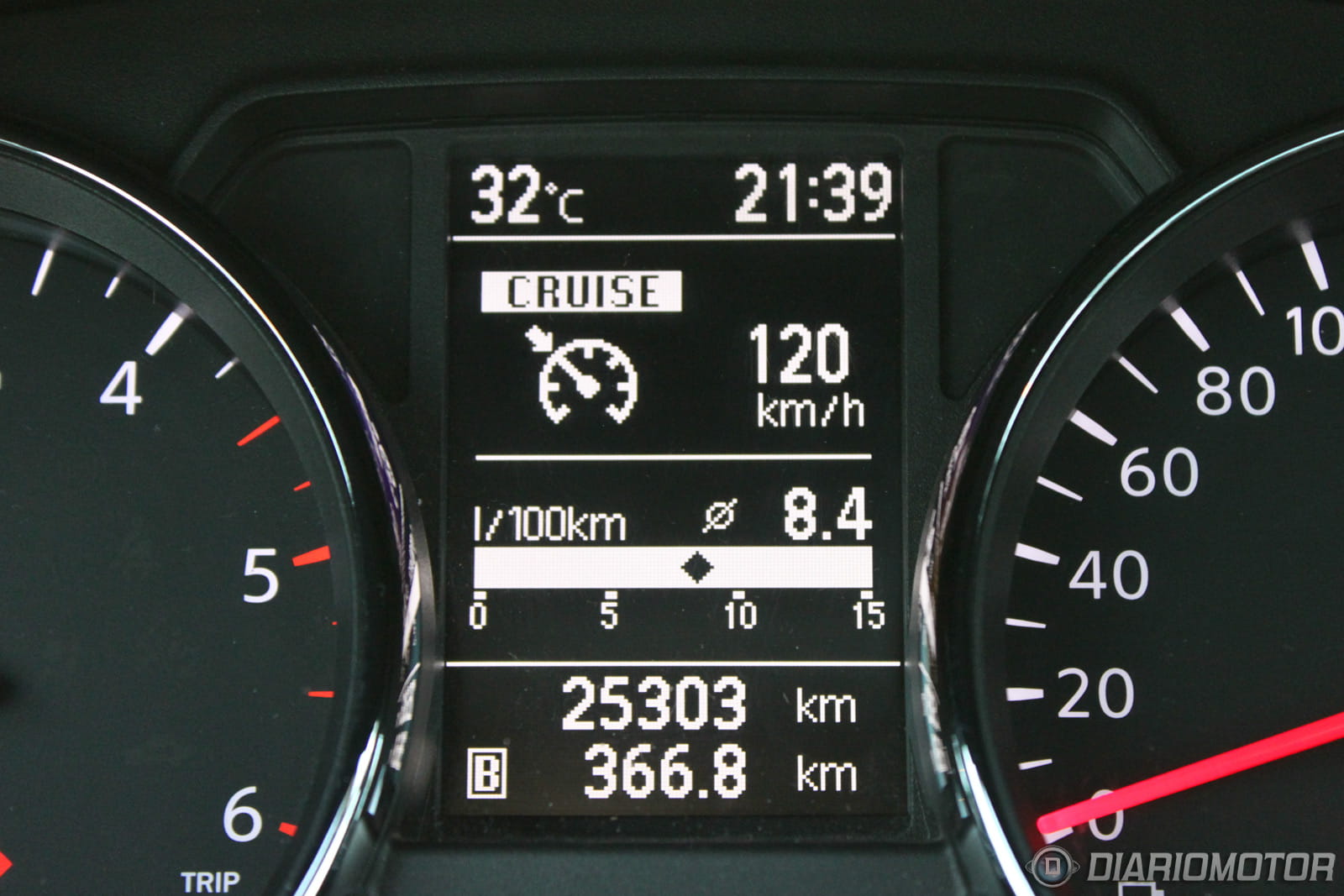 El Nissan Qashqai es un coche que anima a realizar grandes viajes. Tenemos mucho espacio interior y nos sentimos en control de la carretera desde nuestra atalaya. El aislamiento acústico es muy correcto y en general no hay ruidos que predominen en el habitáculo, con lo que se puede mantener una conversación sin ningún problema a 120 km/h. A 120 km/h con el control de crucero activado, el motor gira a exactamente 2.250 rpm, en su zona de par máximo y con evidente desahogo.